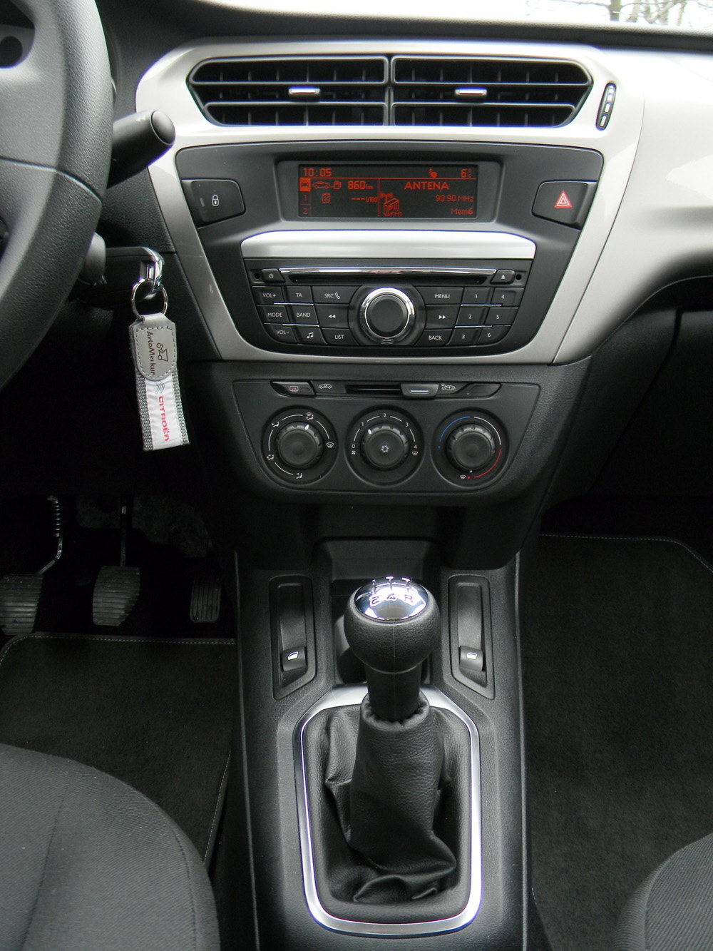 Egonomija je vrlo dobra, sve je na dohvat ruke, a položaj sjedenja je nešto povišen pa se stiče dojam da se vozite u visočijem automobilu nego što stvarno C-Elysee jeste. Sam upravljač je nešto većih dimenzija, ali sa blagim profilisanjem dobro leži u rukama, kao i ručica mjenjača koja je odmjerenih dimenzija. Instrument ploča je pregledna, s tim da su informacije sa putnog računara prebačene na ekran audio uređaja što i nije baš najbolje rješenje obzirom da u unutrašnjosti instrument table ima centralni ekran solidnih dimenzija.