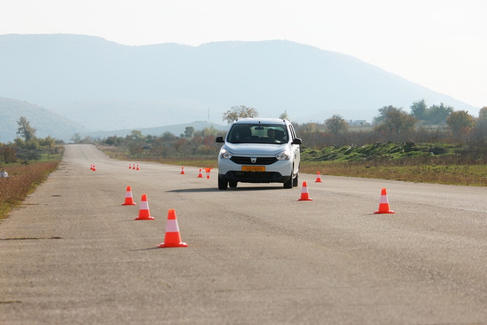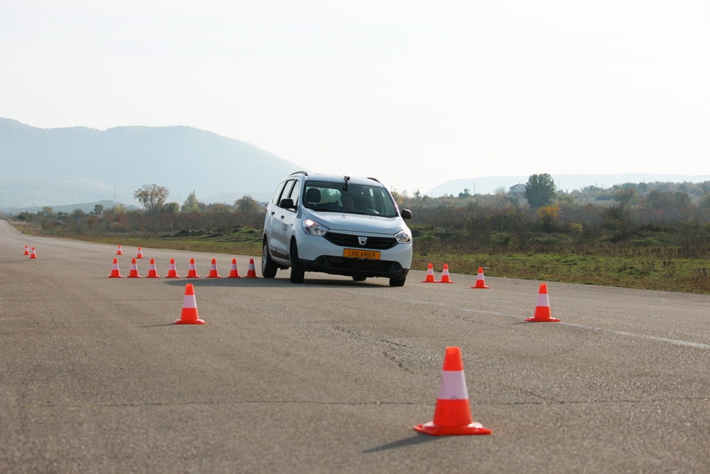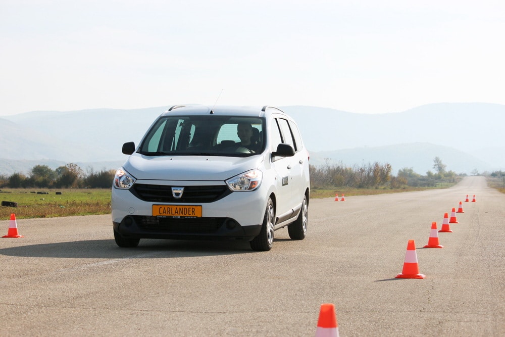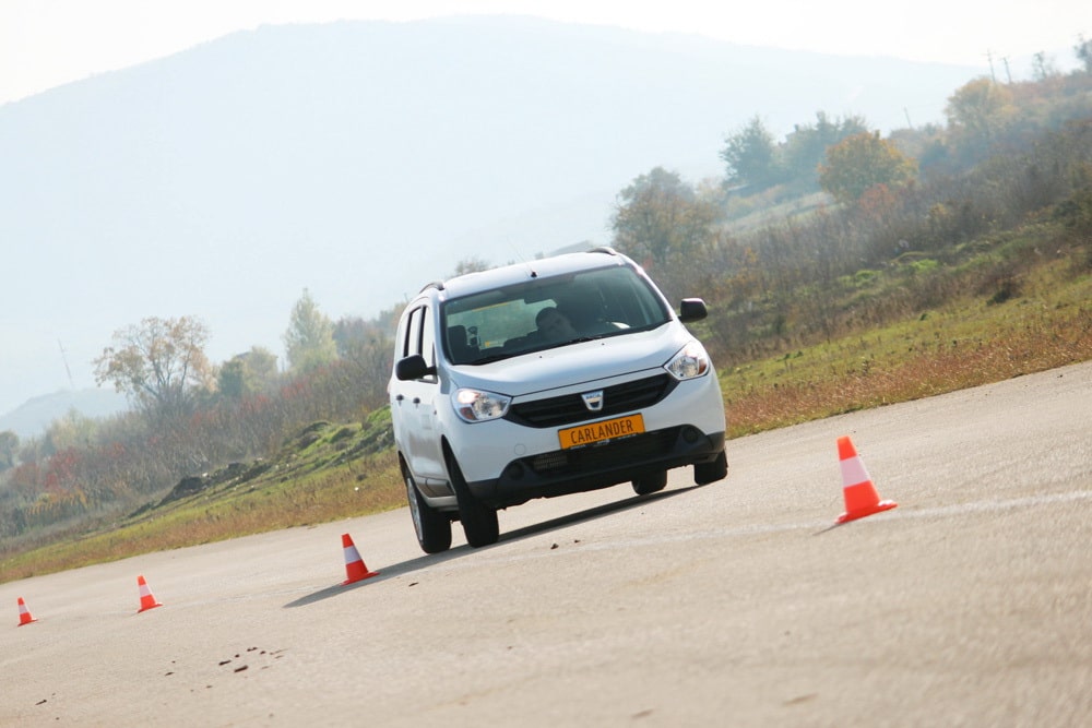 Obzirom na gabarite vozila i na mekano podešeni ovjes pomalo smo bili sumnjičavi u mogućnosti Lodgya na poligonskom testu. Na naše iznenađenje Lodgy koji je imao zimske gume Matador Nordica prošao je sve testove, a neke od njih je bolje prošao od naših očekivanja. Neki testovi imali bi malo bolji rezultat da je automobil imao ljetne gume. U svakom slučaju manevarske sposobnosti Lodgya nisu narušene zbog mekano podešenog ovjesa, ali ipak morate biti svjesni granice ovog automobila obzirom na gabarite i namjenu. Ono što bi svakako dobro došlo Lodgyu jeste ESP sistem, koji bi podigao stepen sigurnosti.