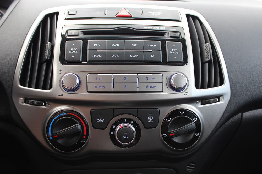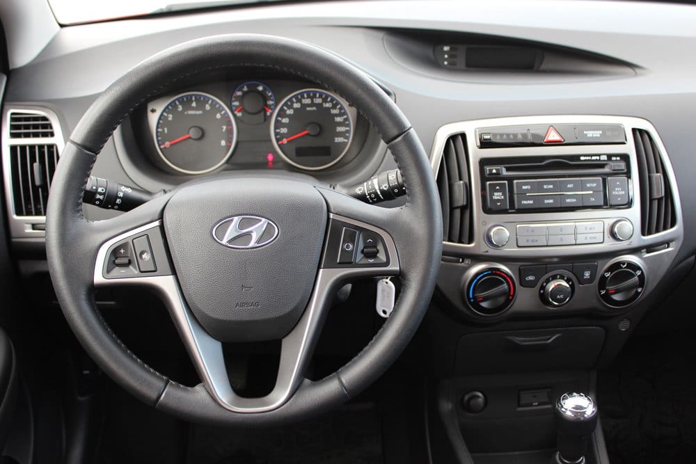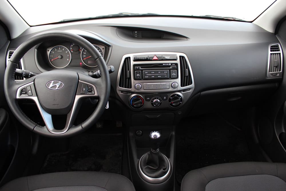 Kao i vani, ista dizajnerska filozofija je primijenjena i u unutrašnjosti automobila. Unutrašnjost je pretrpila minimalne korekcije, u vidu izmjena osvjetljenja instrument table koja je sada u plavoj umjesto u narandžastoj boji, te nešto drugačijim centralnim ventilacionim otvorima. Kada je riječ o materijalima od kojih je napravljena unutrašnjost, vidljiv je napredak, a isto važi i za finalnu obradu za koju nema primjedbi. Iako se radi o tvrdoj plastici, zbog dobre završne obrade svi elementi su dobro uklopljeni, pa nema “škriputanja” plastika. Ovo je vrlo važno za gradski automobil, koji se vrlo često susreće sa rupama na putu, te automobil sa učestalim korištenjem. Konkretno rečeno, unutrašnjost modela i20 djeluje čvrsto kao stijena!