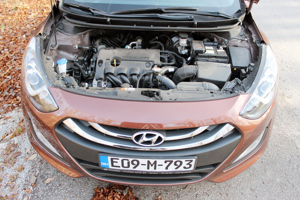 Bazni motor modela Hyunda I30 je 1.4-litreni atmosferski benzinac sa 100 KS i 137 Nm okretnog momenta, a upravo tim motorom bio je opremljen naš testni model. Ovaj mali benzinac sasvim je solidno rješenje za one vozače koji nisu skloni agresivnijoj vožnji, a vrlo dobro je rješenje za one koji većinu godišnje kilometraže prave u gradu. Ovaj 16-ventilski motor karakteriše izuzetno uglađen, miran i tih rad, pa laganom vožnjom put gotovo nećete osjetiti.
