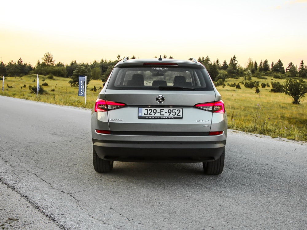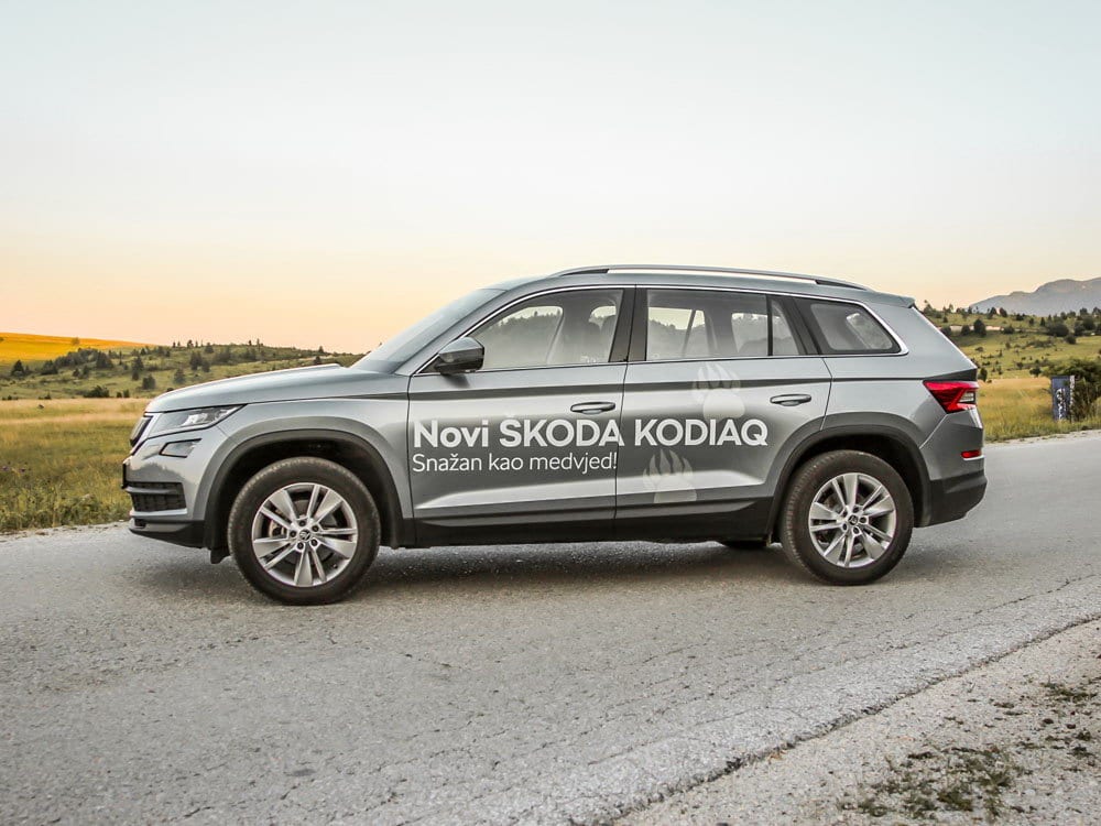 Kodiaq ima blagu padajuću liniju krova što mu daje dozu dinamičnosti, dok plastični elementi oko rubova blatobrana i ulaznim pragovima štite lak od udaraca kamenja i drugih predmeta kada se odvažite sa Kodiaqom krenuti u offroad avanture.