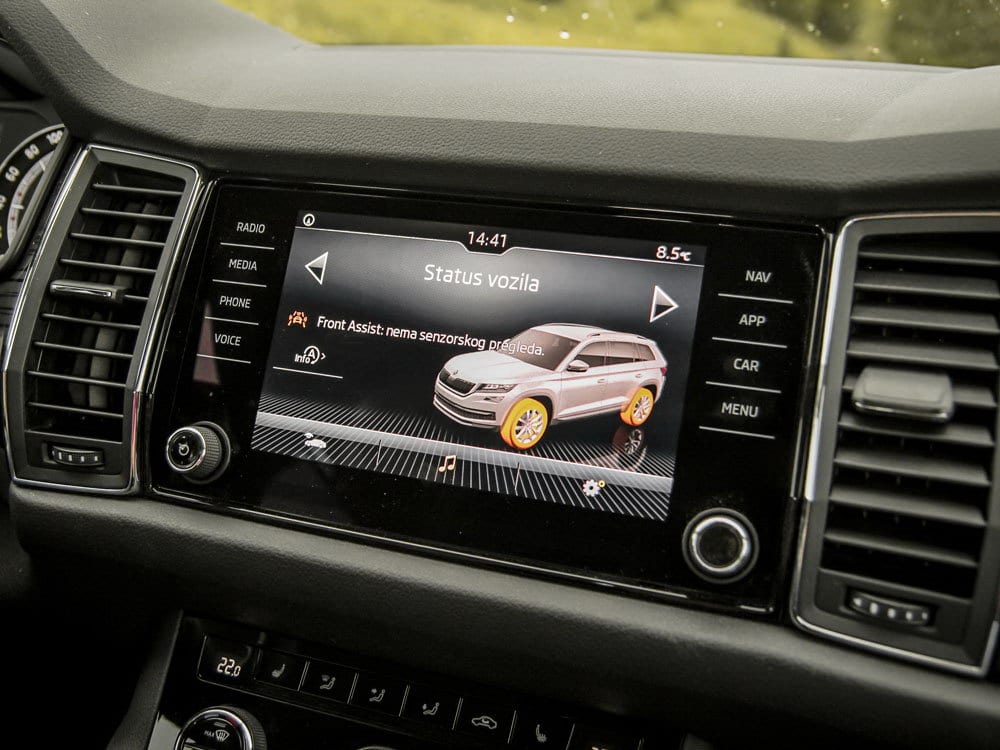 Centralnom konzolom dominira veliki osam inčni ekran Infotainment sistema koji je osjetljiv na dodir. Njegovo okruženje radi vrlo brzo, nudi veliki broj važnih opcija i informacija, a treba naglasiti da je u potpunosti je prevedeno na bosanski jezik.