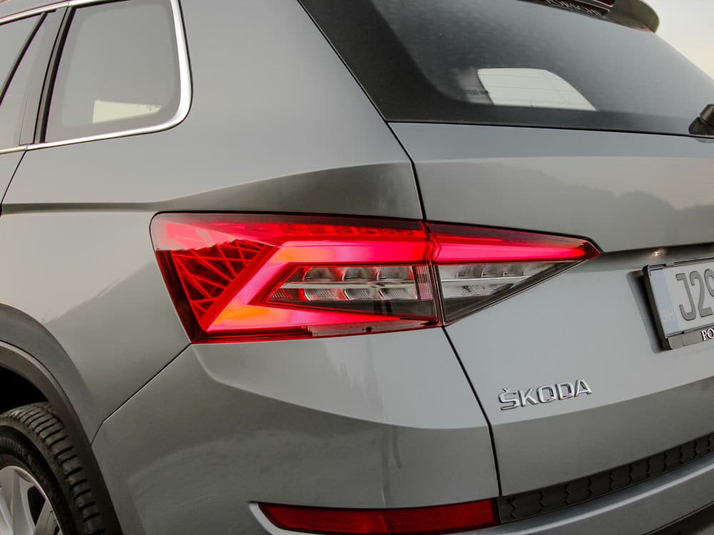 Bočna strana automobila sa čistim i jednostavnim linijama jasno pokazuje gabarite automobila, dok stražnjim dijelom automobila dominiraju velika svjetla u obliku slova C. Ona su tipičnima za marku Škoda, pa se Kodiaq samouvjereno izdiže iz bezlične gomile automobila.