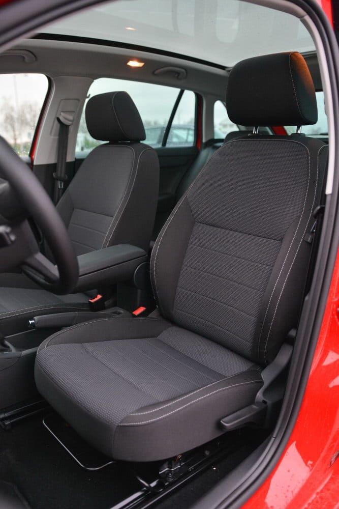 Mnogi će spremno dočekati takav potez za kritikom, što takav način kreiranja unutrašnjosti nije inspirativan, ali je zato maksimalno učinkovit. Ipak, preuzeta su dizajnerska rješenja iz novije generacije automobila pa se može reći da je Spaceback dobio najbolja rješenja iz svih brendova VW grupacije. Unutrašnjost nema nelogičnih rješenja i sve je maksimalno pojednostavljeno za upotrebu. Vozač vrlo lahko može pronaći idealnu vozačku poziciju, a pozicije komandi i prekidača nalaze se na logičnim mjestima, tako da vozač za vrijeme vožnje može intuitivno, bez skretanja pogleda, upravljati svim važnijim funkcijama kao što su, ventilacija i klima uređaj, radio, grijač zadnjeg stakla, opciono grijana sjedišta itd. Kada govorimo o funkcionalnosti, svakako treba spomenuti jedan zanimljiv detalj. Naime, stakla prozora na stražnjim vratima mogu se u potpunosti spustiti, rekli bi smo konačno, jer na velikom broju automobila to nije moguće.
