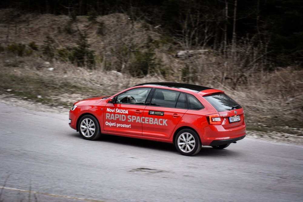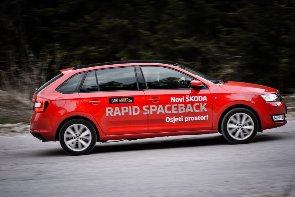 Kada govorimo o prostoru, samo ime ovog modela Spaceback nagovještava da automobil obiluje prostorom, što se potvrđuje ulaskom u putničku kabinu. Vozač i suvozači imaju dovoljno prostora i u visinu i širinu. Na zadnjoj klupi situacija je ista, a u odnosu na Rapid limuzinu, Spaceback čak nudi nešto više prostora za noge putnika. Osjećaj velike prostranosti svakako doprinosi panoramski krov koji pruža zaista jedinstven osjećaj u vožnji, bilo da je sunčan ili kišan dan. Naravno, panoramski krov dostupan je u sklopu dodatne opreme, a za njegovu doplatu treba izdvojiti prihvatljivih 1.167 KM. Čitav prostor u putničkoj kabini osmišljen je prvenstveno da bude maksimalno iskoristiv, u kojem nema nelogičnih rješenja. Bolji poznavaoci modela iz VW grupacije prepoznat će zaista veliki broj preuzetih rješenja od drugih većih modela iz drugih brendova. Naravno, Rapid Spaceback zadržao je Škodinu prepoznatljivost.