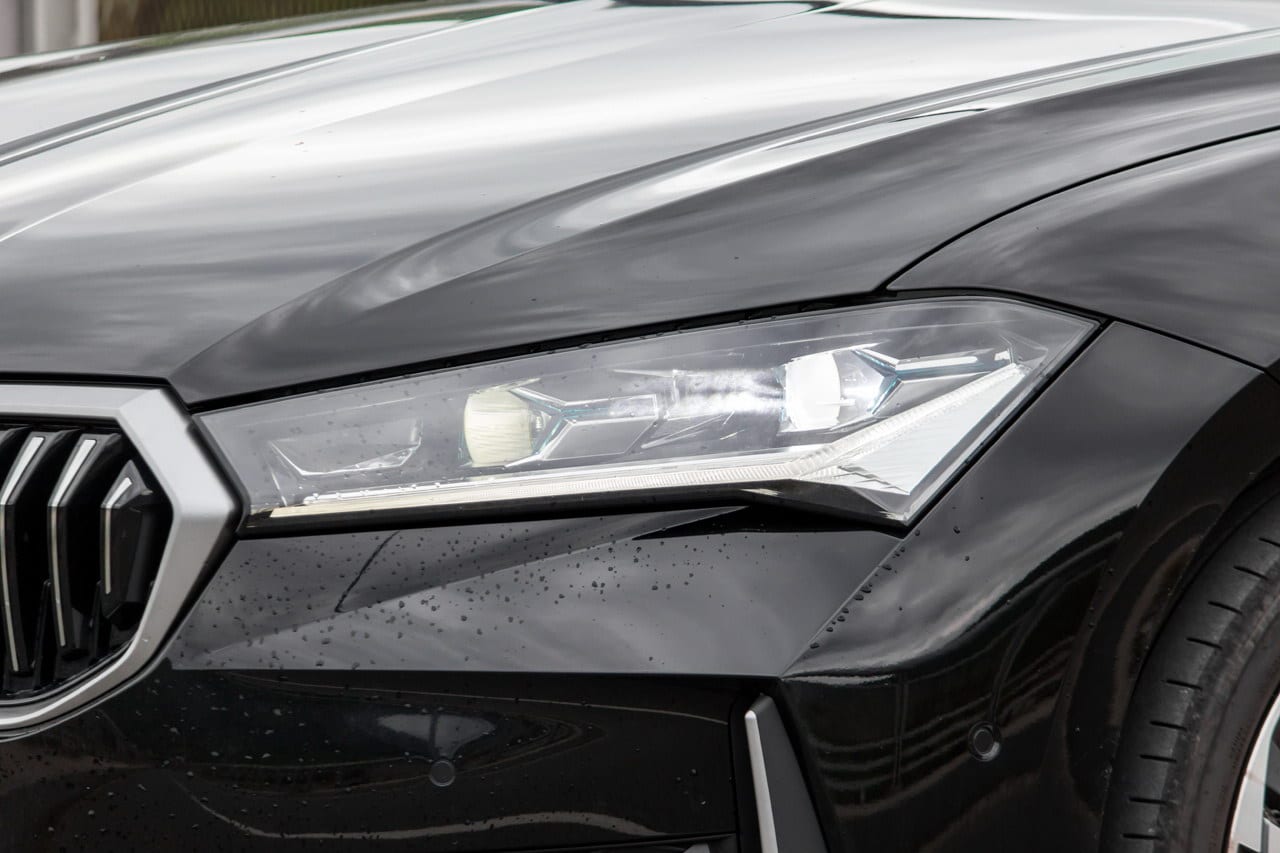 Posebnu pažnju privlače nova LED Matrix svjetla sa znatno poboljšanom svjetlosnom efikasnošću – osvjetljenje je poboljšano za 40% u odnosu na prethodnika. Unutar kućišta farova ističu se i precizno oblikovani elementi u obliku kristala, inspirisani češkom tradicijom staklorezbarstva, što daje autu luksuzan vizuelni potpis.