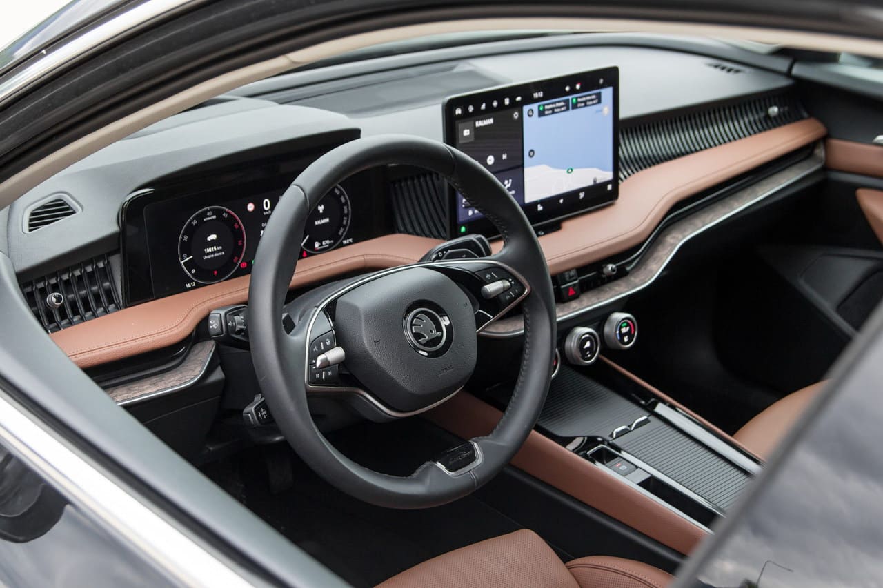 Kabina donosi potpuno novi koncept – čist dizajn, digitalna instrument tabla, 13-inčni infotainment ekran i inovativne Smart Dials kontrole. Materijali vrhunske klase i ergonomski dizajn pružaju luksuzno i intuitivno iskustvo, dok grijana, ventilirana i masažna Ergo sjedišta garantuju izuzetnu udobnost. Ipak, digitalna instrument tabla mogla je biti elegantnije integrisana u cjelokupni dizajn, a još nijansu bolja zvučna izolacija učinila bi Superb potpuno ravnopravnim konkurentom modelima iz višeg automobilskog segmenta.