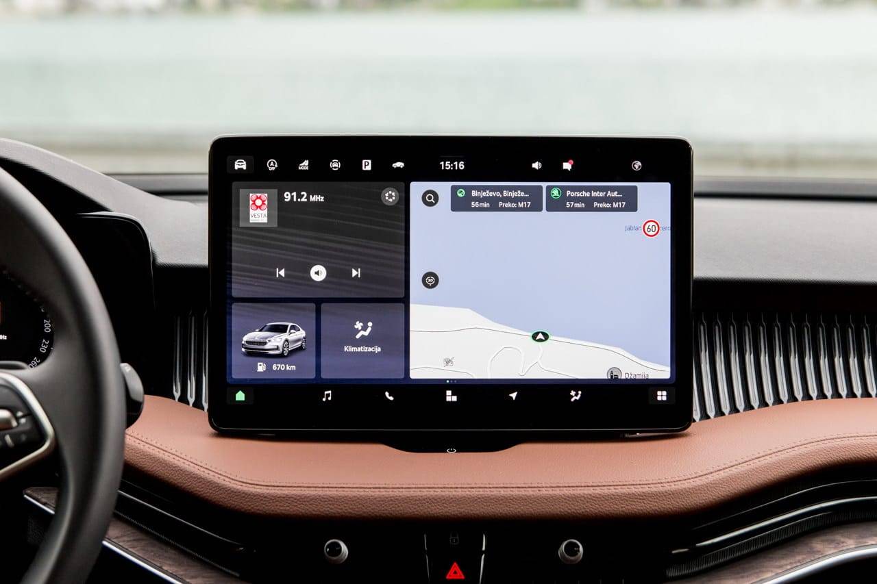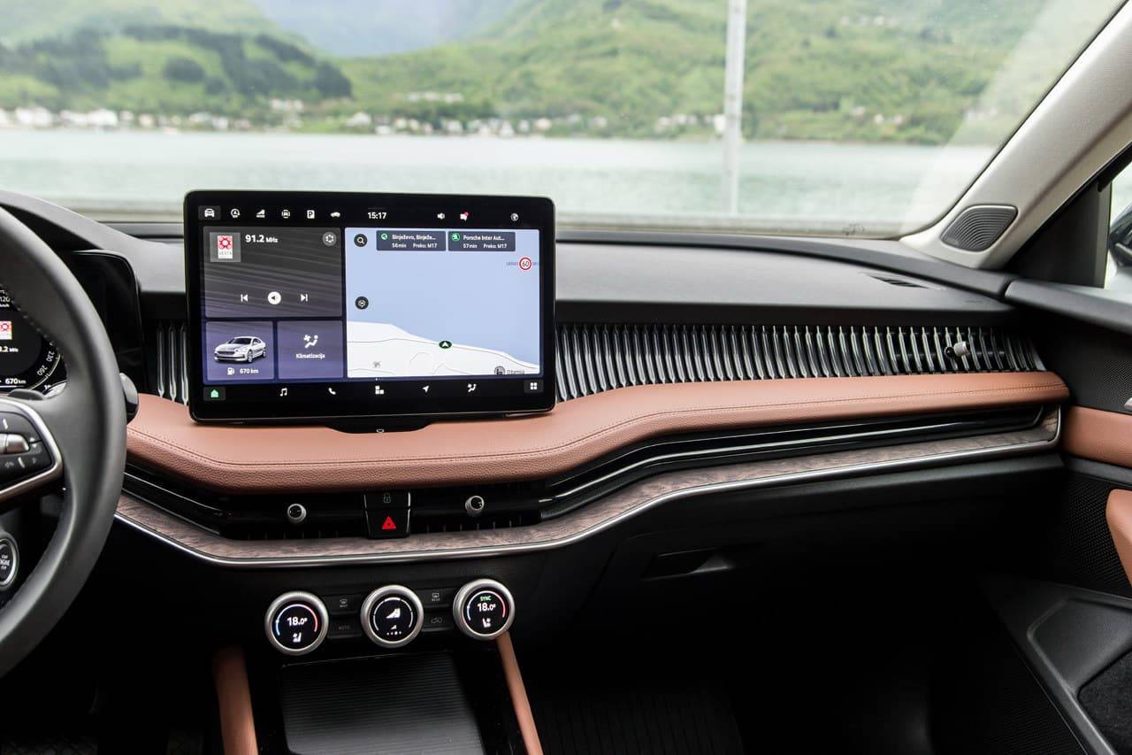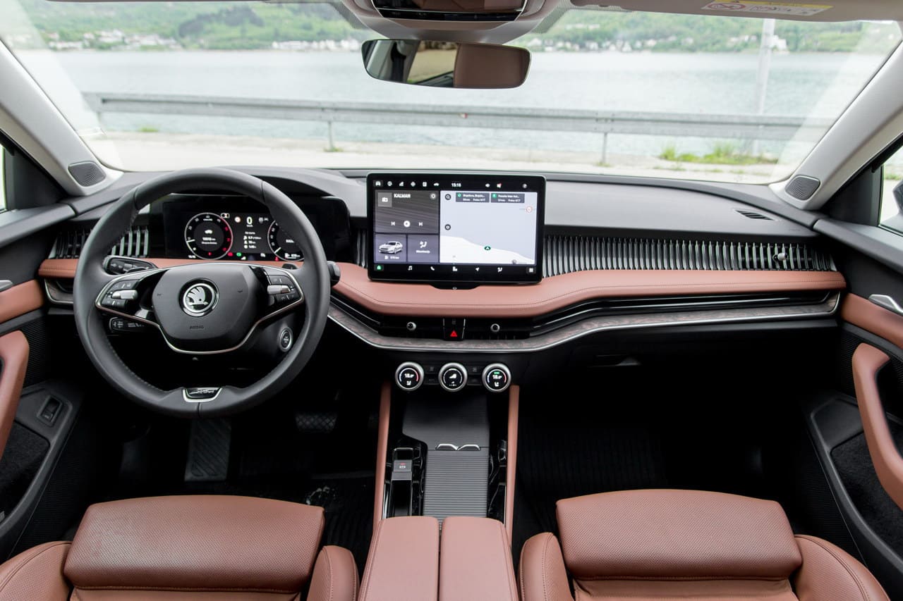 Unutrašnjost Superba L&K predstavlja najčistiju suštinu Škodine filozofije: sve je podređeno udobnosti, funkcionalnosti i estetici. Kabina djeluje otvoreno i prozračno, s izuzetnim osjećajem kvalitete materijala i pažnje posvećene detaljima.