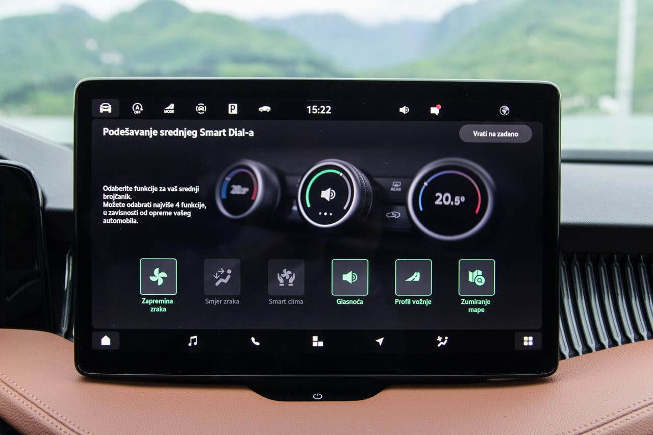 Vozačev i suvozačev Smart Dail kontrolišu unutrašnju temperaturu, grijanje, hlađenje i masažu sjedišta, a šta se trenutno podešava prikazano je na malom ekranu. Za brzu promjenu podešavanja dovoljan je kratki pritisak na ekran i automatski odabirete drugu funkciju. Centralni Smart Dial kontroliše šest funkcija: brzinu ventilatora, pametni klima uređaj, smjer zraka, jačinu zvuka, režim vožnje i uvećavanje/smanjivanje navigacione karte. Vlastitom željom vozač može postaviti četiri funkcije na centralni Smart Dail od ponuđenih šest.