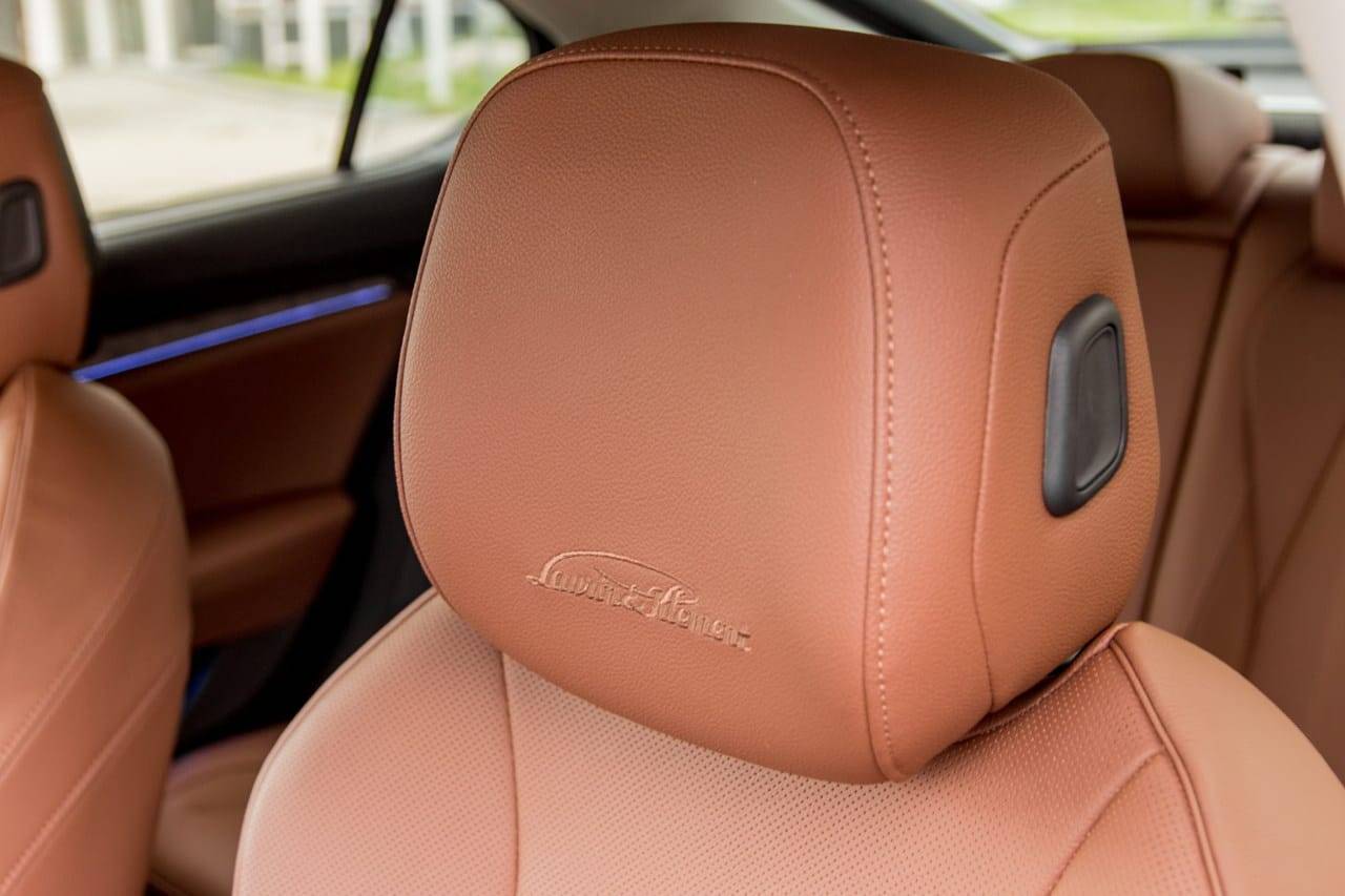 Korišteni materijali u L&K izdanju uključuju opcionalnu kožu boje konjaka, panelne obloge sa Soft touch završnom obradom, reljefne oznake „Laurin & Klement”, kao i ambijentalno osvjetljenje u više boja. Prednja Ergo sjedišta standardno dolaze s funkcijama grijanja, hlađenja i masaže pomoću deset pneumatski kontrolisanih jastuka, a nude i memorijsku funkciju i automatski ulazak (Smart Comfort Entry).