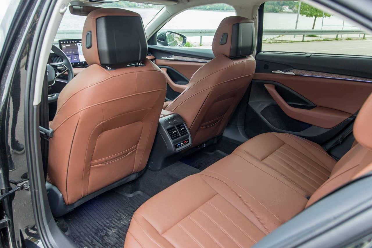 U tom pogledu, Škoda Superb je neprikosnoven – pravi šampion klase kada je u pitanju komfor putnika na zadnjim sjedištima. Čak i visoki putnici mogu udobno prekrstiti noge bez dodirivanja prednjih naslona, dok niska linija prozora i savršeno oblikovani nasloni pružaju odličnu vidljivost i osjećaj otvorenosti. Za poslovne korisnike koji žele biti voženi u miru i udobnosti – teško da postoji bolji izbor u ovoj cjenovnoj kategoriji.