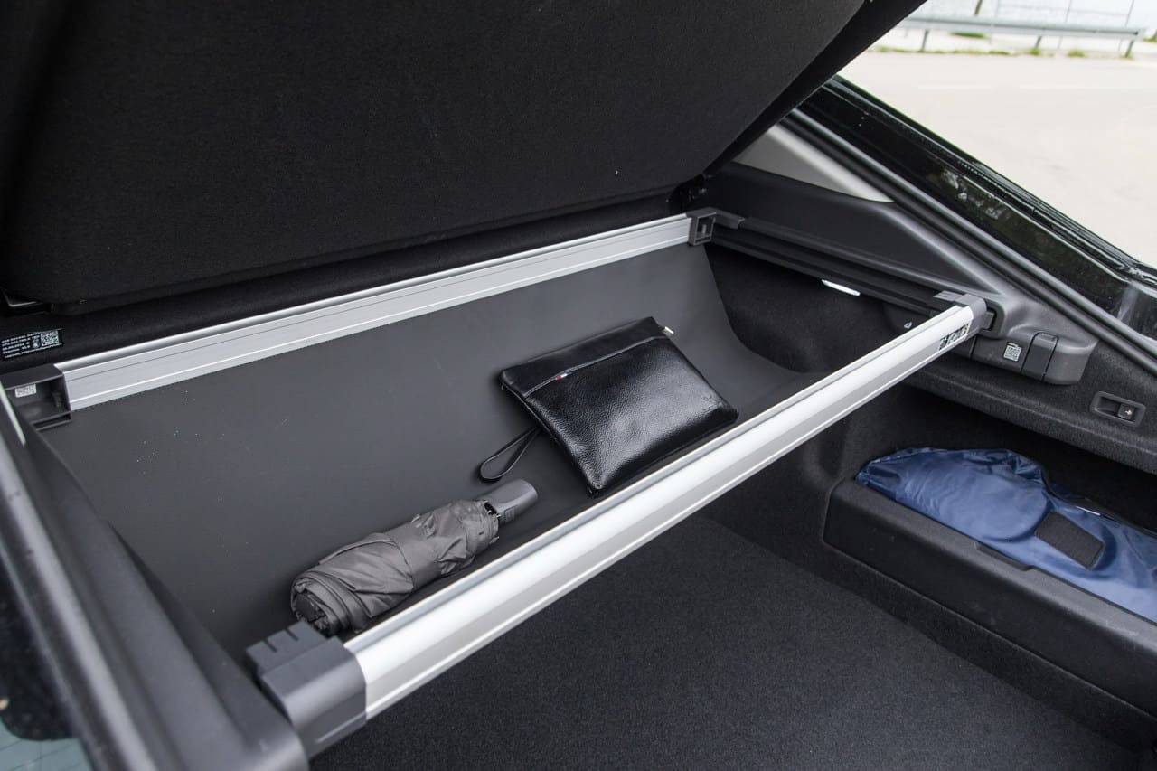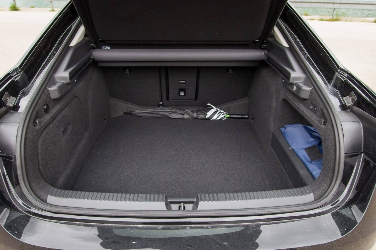 Funkcionalnost nije zanemarena – velika peta vrata otvaraju se automatski putem senzora (virtuelna papučica), omogućavajući jednostavan pristup prostranom prtljažniku. Branik je pažljivo oblikovan da usmjerava protok zraka, a donji dio zadnjeg difuzora također ima aerodinamične funkcije, smanjujući vrtloženje zraka iza vozila.