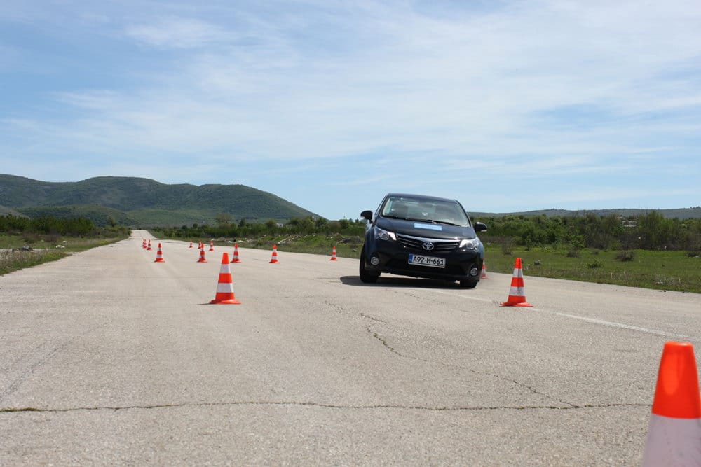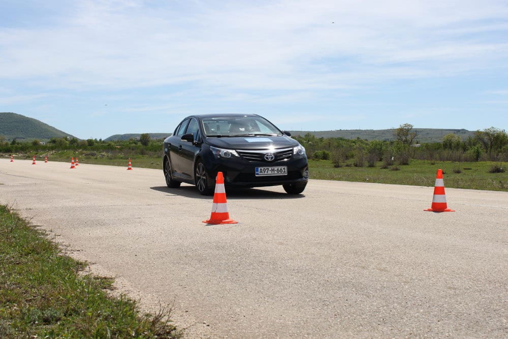 Na manevarskim testovima poput slaloma i kočenja sa preprekom, naročito se odrazio utjecaj ovolike mase i teškog dizelskog motora, pa je često nastupalo podupravljanje odnosno proklizavanje preko prednje osovine. Međutim, i pored ove pojave, Avensisa je bilo lako zadržati na zadatoj putanji zahvaljujući odličnim sistemima vješanja i upravljanja. Tako je prosječna brzina prolaska slalomskom stazom iznosila 60,11 km/h uz dejstvo bočne sile promjenjivog smjera čiji je intenzitet dostizao 1G. Prosječna brzina kojom je Avensis prolazio između čunjeva postavljenih prema normama za los-test, iznosila je 103,38 km/h. Najteži ispit na poligonu, odnosno kočenje sa preprekom, Avensis je prošao bez problema, sa početnom brzinom od čak 100 km/h. Iako je naginjanje karoserije pri ovom testu bilo značajno ni u jednom trenutku nije dolazilo do gubitka kontrole nad vozilom.
