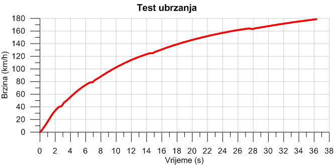 Pravolinijski testovi pokazuju snagu motora i podešenost transmisije, a jedan od takvih jeste i vrijeme ubrzavanja vozila od 0 do 100 km/h. Naša mjerenja su pokazala da je ovom Avnesisu potrebno 9,6 s da dostigne 100 km/h, a nakon 1238 m dostigne i 178 km/h koliko smo maksimalno uspjeli razviti na našoj testnoj stazi ograničene dužine od 1,6 km.