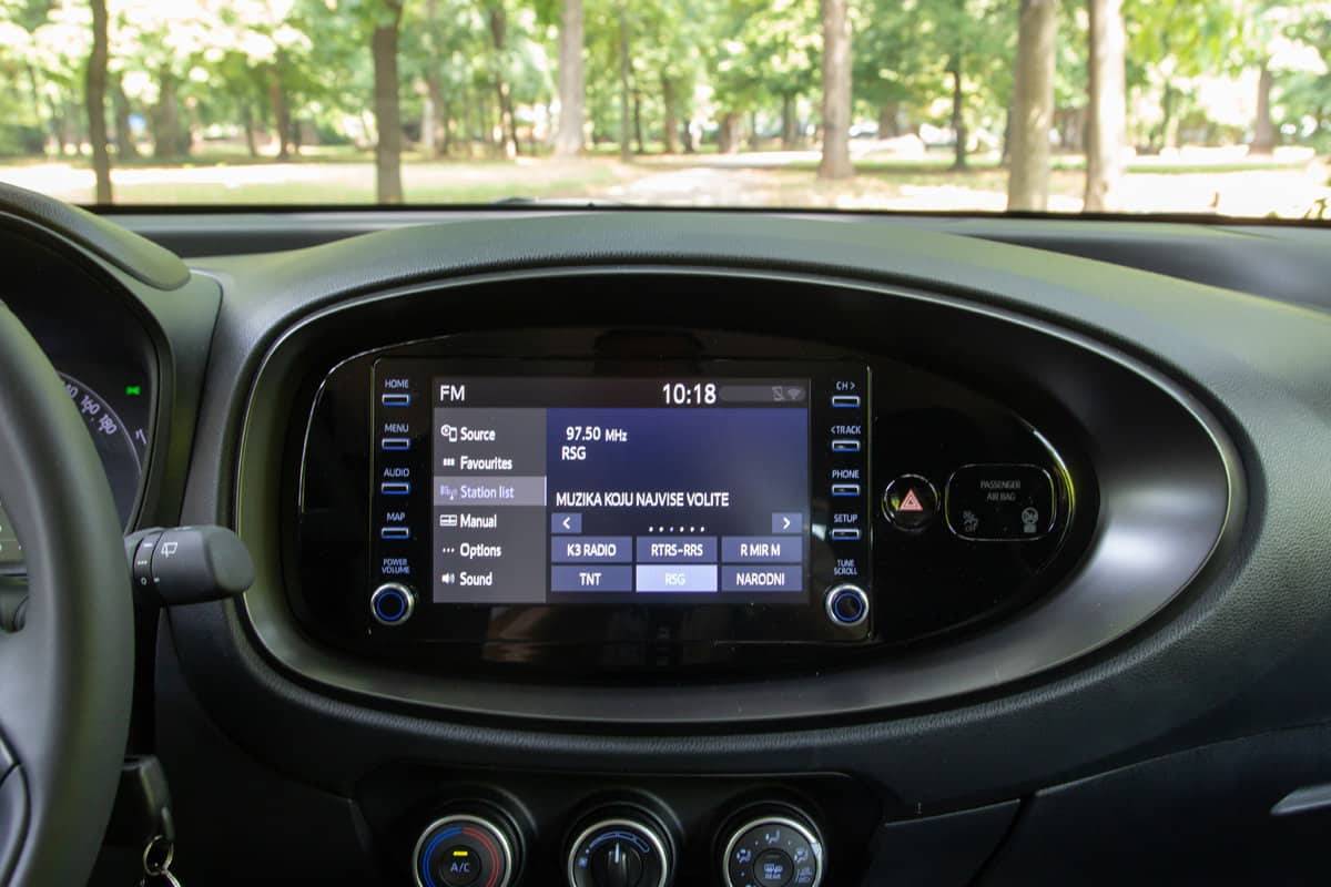 Aygo X dobio je Toyotin multimedijalni sistem sa već poznatim klasičnim rješenjem grafike, koji radi korektno bez bilo kakvih zadrški. U njemu su integrisane sve bitne funkcije, audio sistem, telefonija, informacije o automobilu, Wi-Fi pristupna tačka, video prikaz kamere za vožnju unazad, itd. Ono što je za svaku pohvalu jeste da je Toyota u ovom automobilu zadržala veliki broj fizički prekidača koji omogućavaju intuitivno korištenje. Voljeli bi smo da su prekidači za otvaranje bočnih stakala osvjetljeni kao što je osvjetljen prekidač za podešavanje retrovizora.