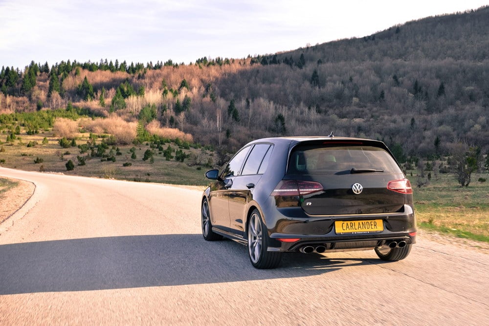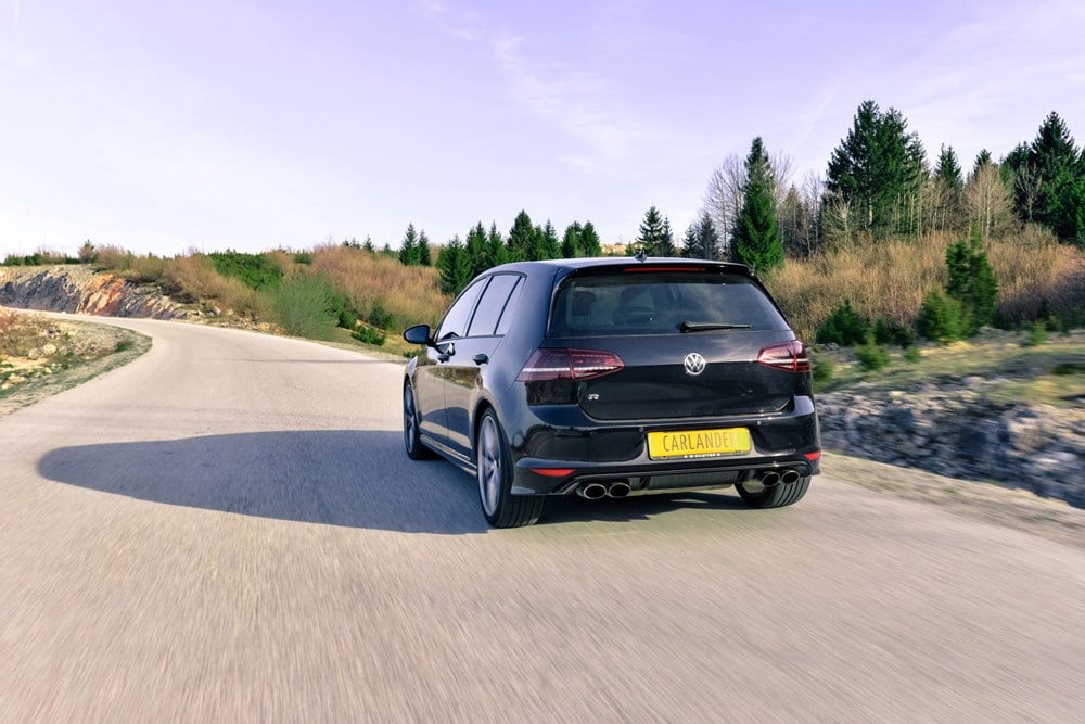 Za one koji i nisu baš upućeni oko Golfa R, u nekoliko riječi pokušat ćemo objasniti… Radi se o najjačem Golfu za kojeg možemo reći da je Golf GTI na steroidima. Pokreće ga isto 2.0-litreni TSI motor, ali koji je uz određene tehničke promjene „nasviran“ na 300 KS, za razliku od osnovnog GTI-ovog motora koji raspolaže sa 220 KS. Ono što čini sljedeću veliku i izuzetno važnu razliku između GTI-a i R-a je i 4Motion pogon koji je postavljen na R model, jer 300 KS treba adekvatno prenijeti na asfalt!