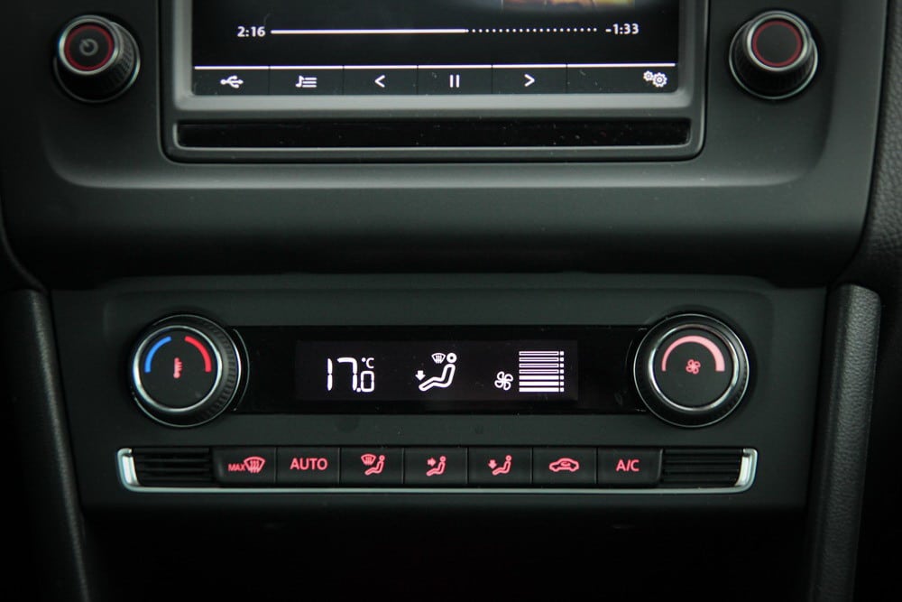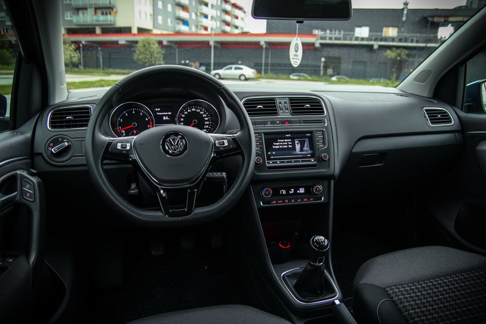 Obzirom da je testni model imao samo R Line paket koji je donio vizuelne promjene na vanjskom dijelu automobila, u putničkoj kabini testni model bio je standardnom izdanju. Instrument tabli aktuelnog pola neodoljivo podsjeća na onu iz većeg Golf 7 modela. Također, kožom presvučeni multifunkcionalni upravljač te ručica mjenjača neodoljivo podsjećaju na većeg “brata” – Golfa. U odnosu na prethodno testirane modele, ovaj model imao je digitalnu automatsku klimu što generalno nije čest slučaj u ovoj automobilskoj klasi. Ovaj sistem vrlo je jednostavan za korištenje, pa tokom vožnje intuitivno možete mjenjati brzinu ventilatora ili temperaturu, što je vrlo važno za sigurnost u vožnji.