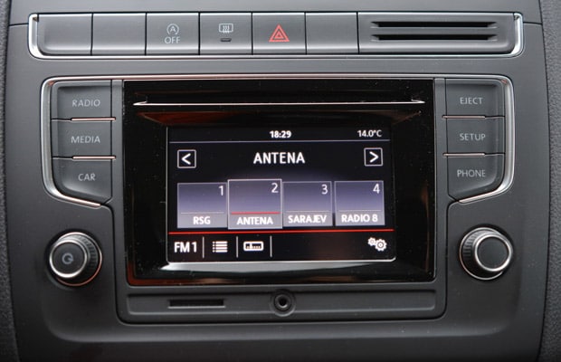 Da je novi Volkswagen Polo više tehnološki napredovao nego dizajnerski, potvrđuju i novi audio sistemi kojim je opremljen ovaj model. Tako je novi Polo dobio posljednju generaciju multimedijalnih sistema, koji imaju ekran osjetljiv na dodir, baš kao i aktuelni Golf. Testni model bio je opremljen sa audio uređajem “Composition Colour” sa 5 inčnim ekranom osjetljivim na dodir, a koji posjeduje CD player i slot za SD karticu, MP3/WMA podršku, AUX-IN i 6 zvučnika. Također, tu je bio i Connectivity paket koji uključuje Bluetooth priprema za mobilni telefon i MEDIA-IN priključkom za USB stick. Preko navedenog audio uređaja moguće je očitavati informacije iz vožnje, te vrštiti manja podešavanja kao što je intenzitet svjetla na instrument tabli i sl.