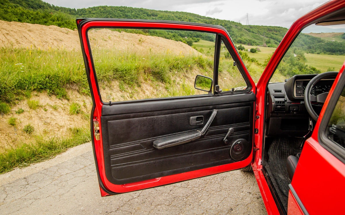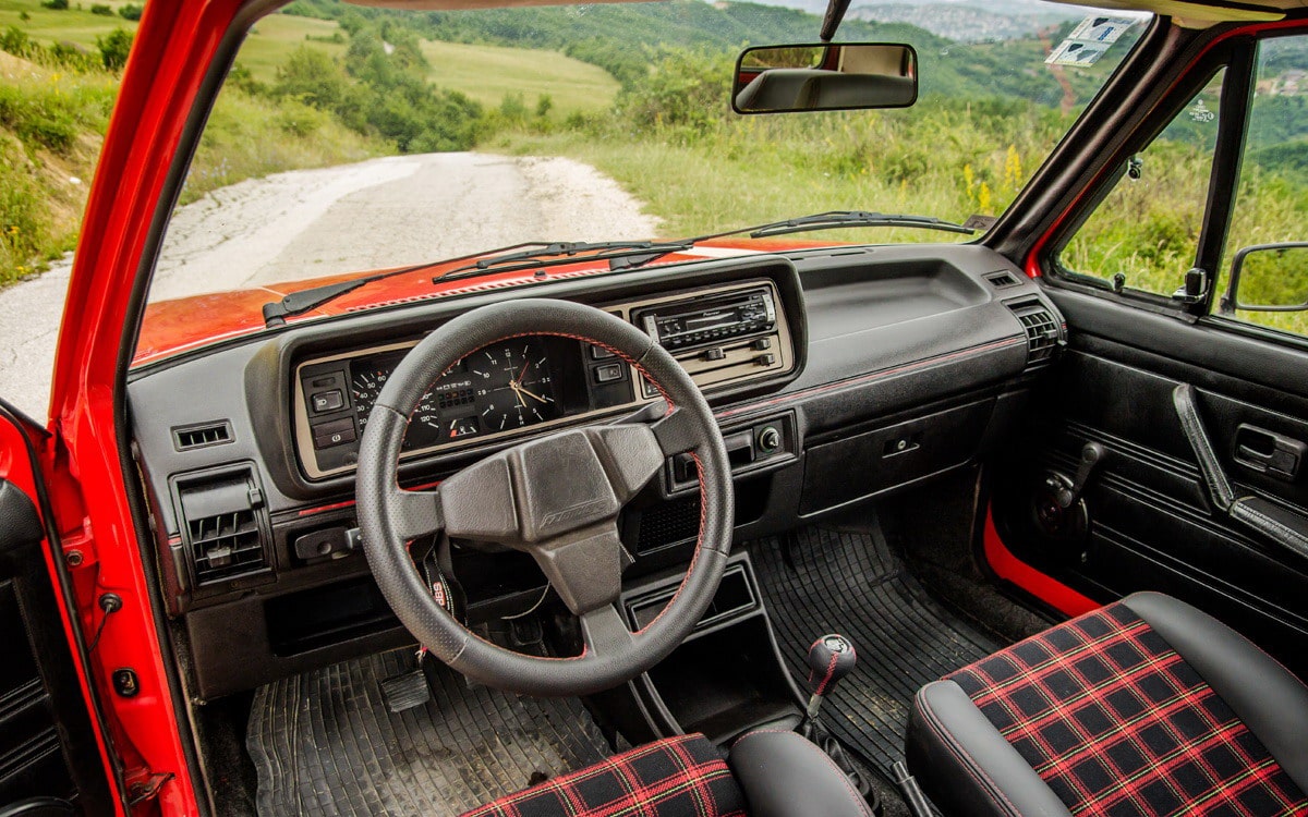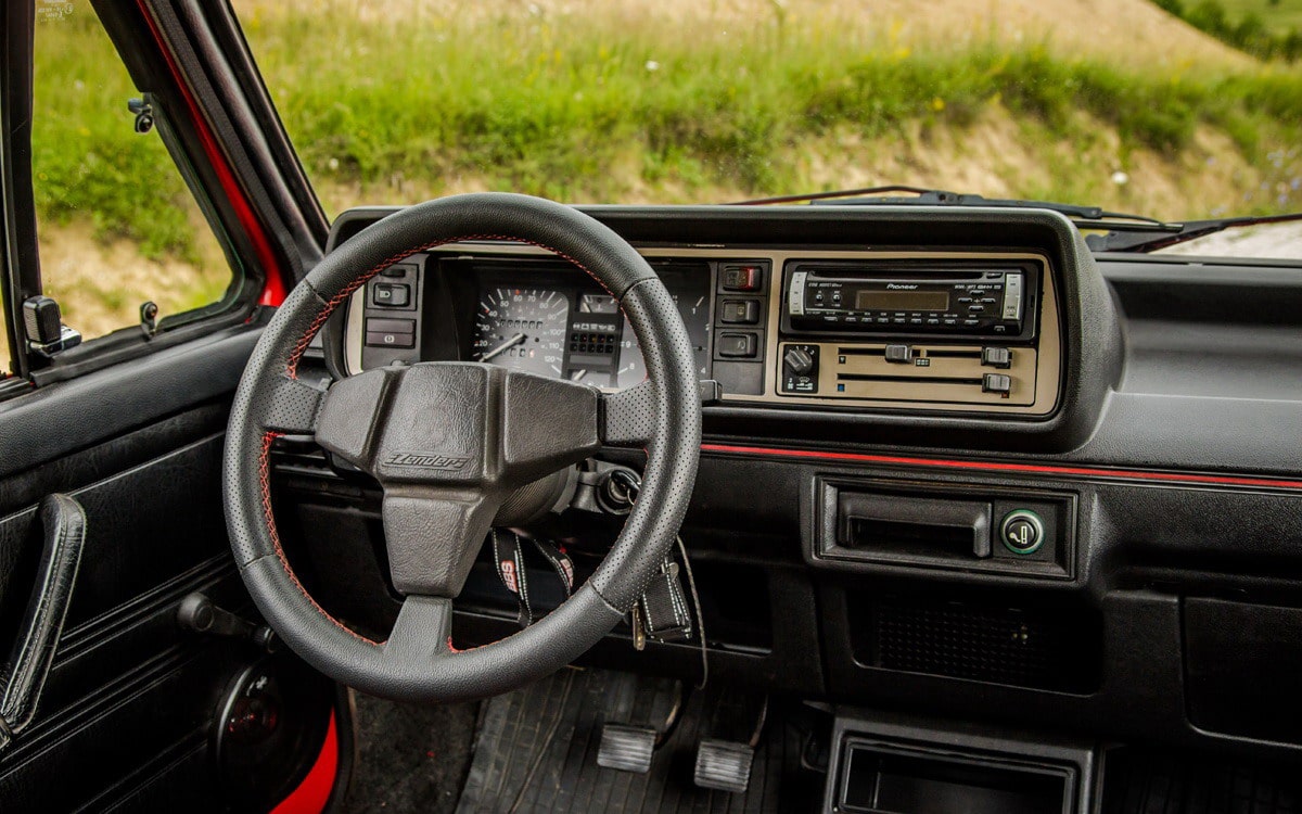 Automobil je dobio i trokraki kožni upravljač „Zender”, te kožom presvučenu ručicu mjenjača i ručne kočnice. Svi šavovi na kožom presvučenim dijelovima presvučeni su crvenim kontrastnim koncem koji se odlično uklapa u boju i cjelokupni dizajn automobila. Do ovih dijelova nije jednostavno doći i uglavnom ih možete pronaći u Njemačkoj. Ali i kada ih nađete morate ih platiti po cijenama koje vladaju na tom tržištu, pa je tako cijena ovog upravljača i ručice mjenjača bila 350 eura.