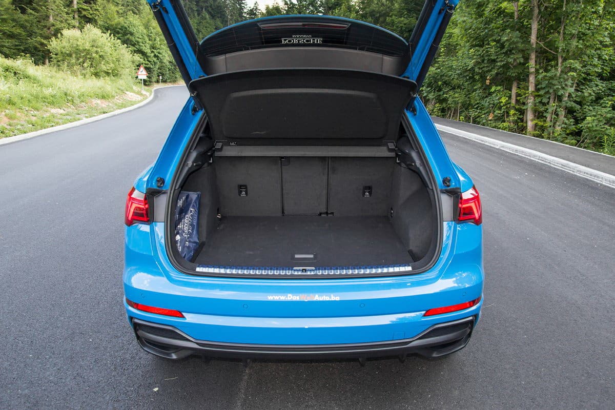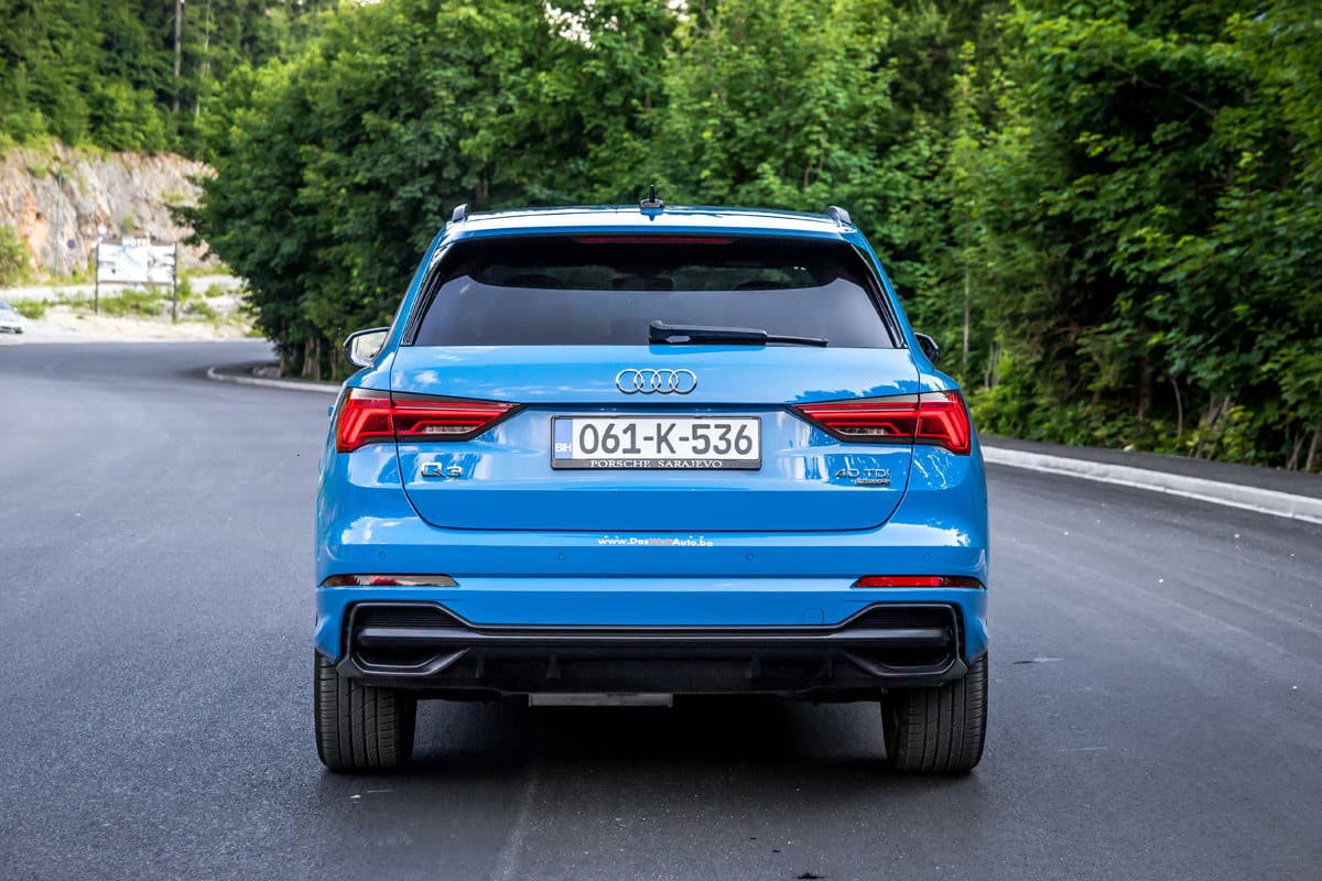 Velika svjetlosna grupa u LED izvedbi dominira zadnjim dijelom automobila, a veliki spojler na poklopcu prtljažnika pored aerodinamičkog efekta vizuelno produžava liniju krova zbog čega novi Q3 izgleda duže. Donji dio zadnjeg branika donosi plastičnu masku koja također naglašava offroad izgled.