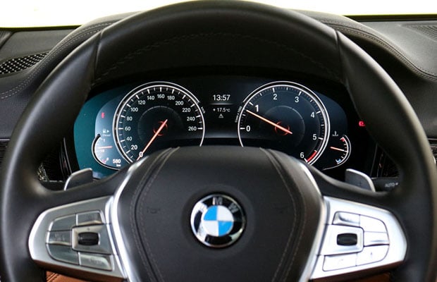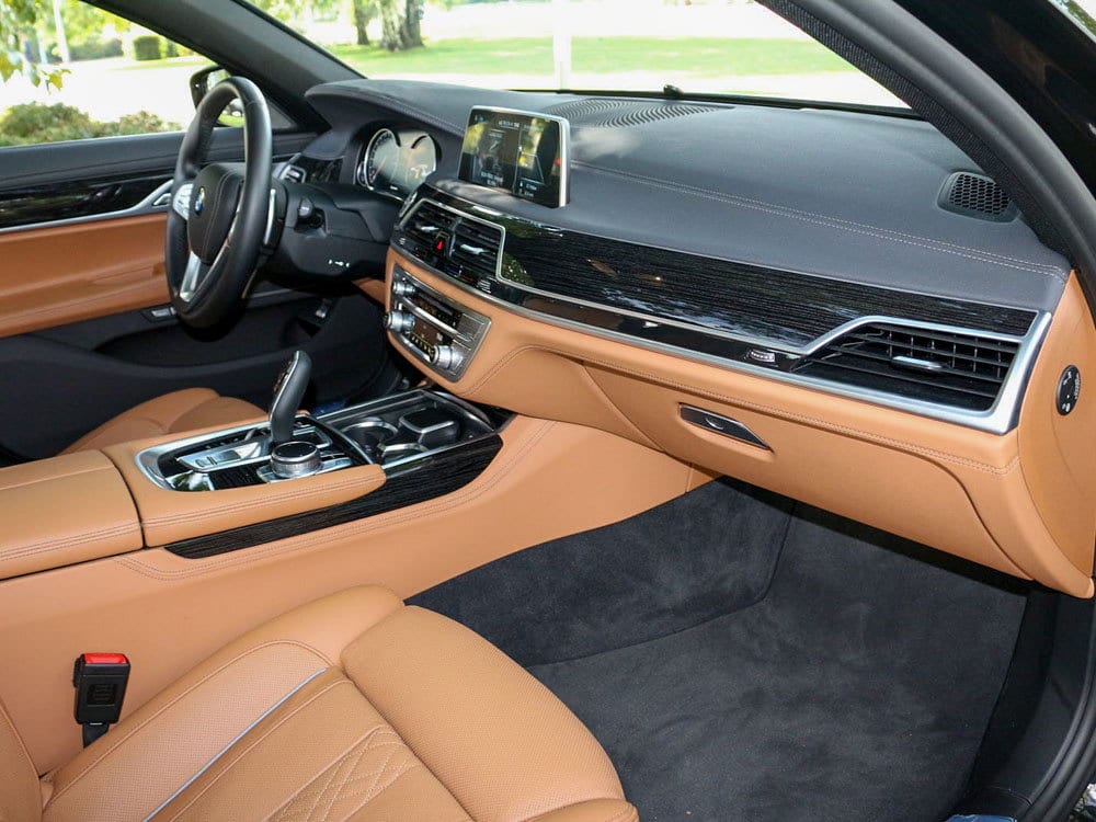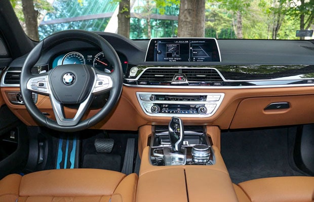 Konstruktori su se potrudili da vlasnik podjednako, ako ne i više, uživa za volanom najveće BMW-ove limuzine. Naravno, sva podešavanja su električna, sa memorijom položaja sjedišta, retrovizora i volana. Mislilo se i na one vrlo krupne, pa se po gašenju motora sjedište i volan pomjeraju unazad u cilju lakšeg izlaska i ulaska. Komandna tabla je kompletno dizajnirana po standardima BMW-a i tu većih iznenađenja nema, osim u pogledu materijala.