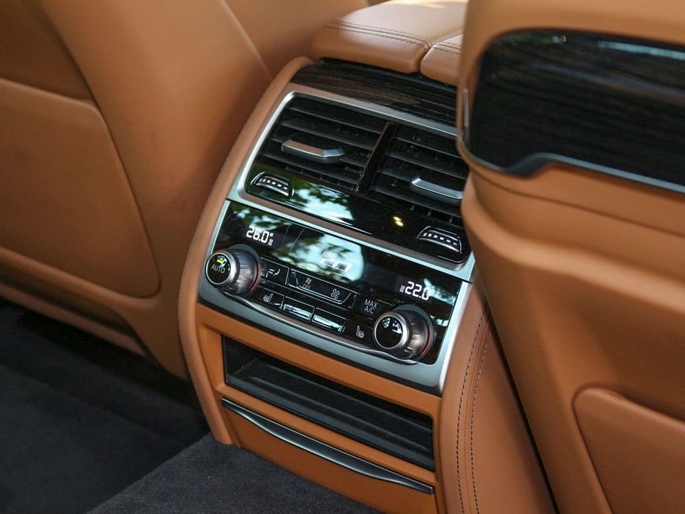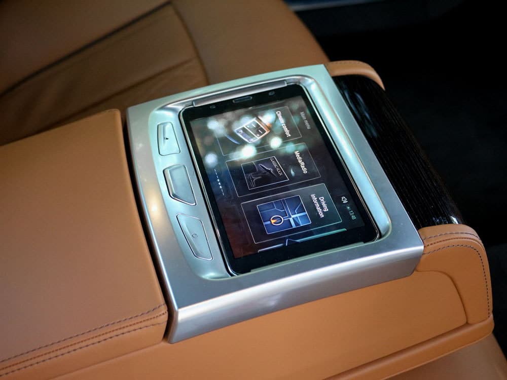 Kod ovakvog automobila, naravno, prvo treba sjesti pozadi. Produženo međuosovinsko rastojanje (fabrički kod za “L” verziju je “G12”) je donijelo dodatni prostor, tako da putnici na zadnjim sjedištima mogu komotno da prekrste noge. Spuštanjem naslona za ruke otkrivamo tablet marke Samsung, kojim se podešava mnogo toga; tablet možete da izvadite pritiskom na dugme, a sofisticirani mehanizam uz pomoć elektro-motora će ga izdići iz ležišta. Osim ozvučenja i posebne dvije zone “klime” za putnike pozadi, preko tableta možete da podešavate grijanje, ventilaciju i nagib sjedišta, da uključite masažu, da pratite parametre sa putnog kompjutera, navigacije…