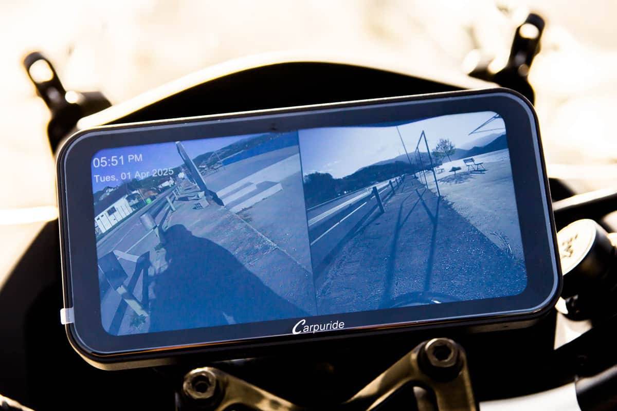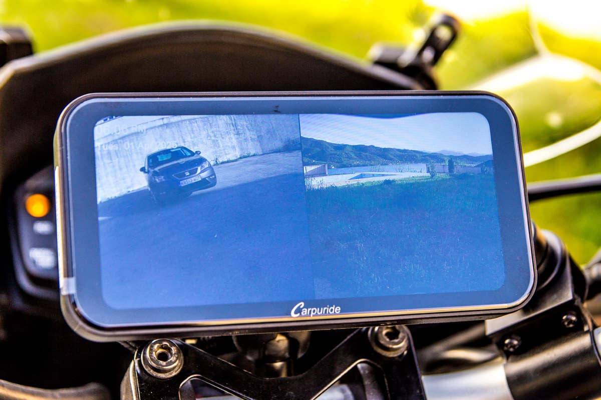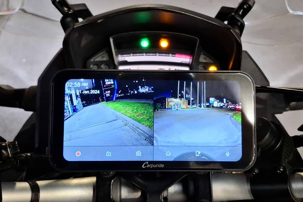 Carpuride W603D isporučuje se sa dvije HD kamere koje pružaju sveobuhvatan pogled na cestu ispred i iza motocikla. Obje kamere snimaju u Full HD rezoluciji (1080p) sa 30 fps, omogućavajući jasnu i tečnu sliku, što je posebno važno za dokumentovanja vožnje, u slučaju eventualnih incidenata. Svaka kamera ima široki ugao snimanja od 140 stepeni, što znači da zajedno pokrivaju gotovo cijelo okruženje motocikla i minimaliziraju mrtve uglove. Tokom vožnje moguć je istovremeni prikaz slike na ekranu sa obje kamere, a posebna olakšica može biti prikaz sa zadnje kamere kada na motociklu imate velike bočne kofere i saputnika što vam smanjuje preglednost iza vas.