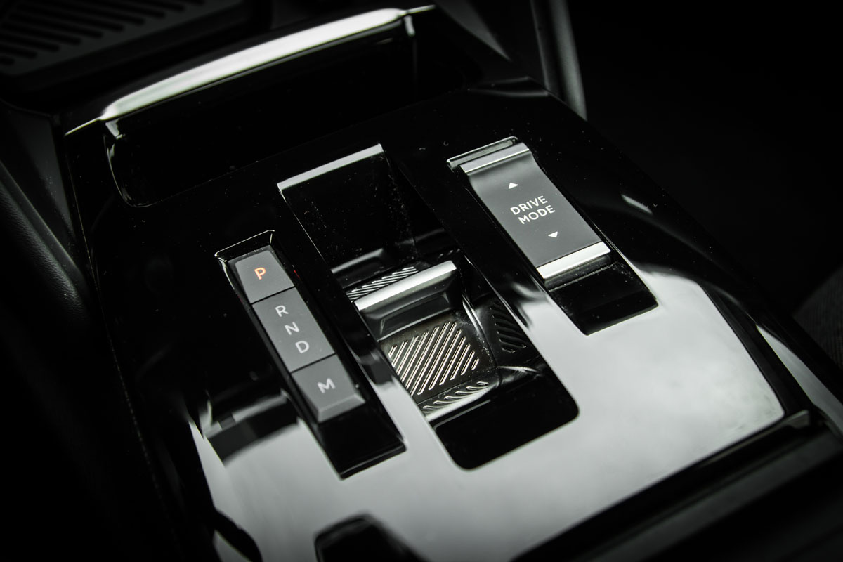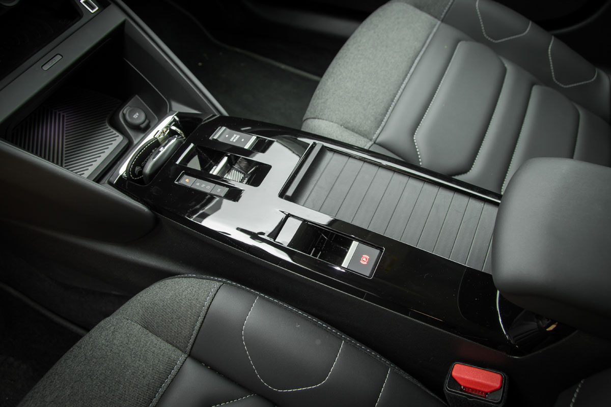 Na centralnom grebenu nema klasične ručice mjenjača, već je tu samo mali prekidač – selektor moda vožnje automatskog mjenjača. Uz njega odmah je postavljen i prekidač selektora moda vožnje: eco, normal i sport, pa jednostavno i brzo u vožnji možete mijenjati stil vožnje. Uz navedene prekidače tu je i prekidač električne parkirne kočnice. U centralnom grebenu nalaze se još dva pretinca, za flaše i druge sitnice. Njegova plastika je obojena u klavir crnu boju, što je odavno već poznato, da je to pravi magnet za prašinu i ogrebotine koje će se vremenom javiti.
