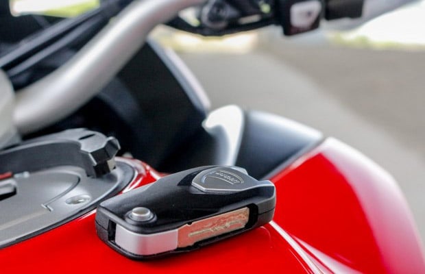Kako ima beskontaktnu bravu, ključ od motora nalazi vam se u džepu i palite ga pritiskom na dugme. Ispod vas začuje se prepoznatljivo mrmorenje dvocilindraša, znatno uljepšano Termignoni ispušnim sistemom.