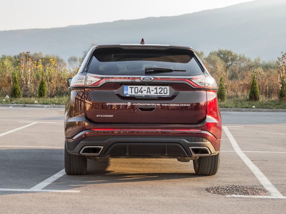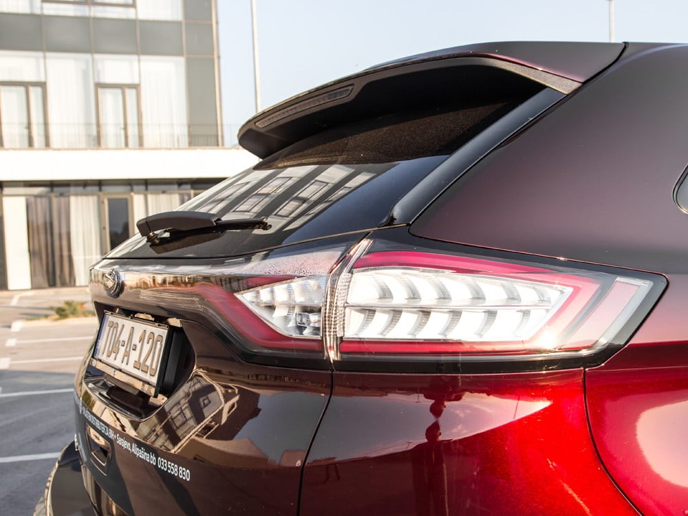 Lijevu i desnu zadnju svjetlosnu grupu sastavlja centralna LED linija koja postaje sve češće omiljeno dizajnersko rješenje. Ford Edge sa ovakvim dizajnerskim pristupom ide u borbu sa najjačim konkurentima u ovom segmentu: Volkswagen, Kia, Hyundai, Renault… Svi glavni konkurenti promovišu sportski duh svojih modela, dok Ford Edge sa Titanium i ST Line paketom opreme spaja eleganciju i sportski duh.