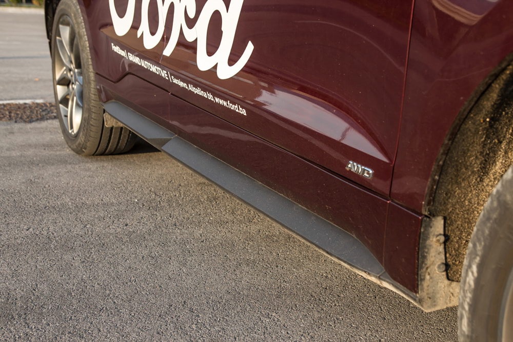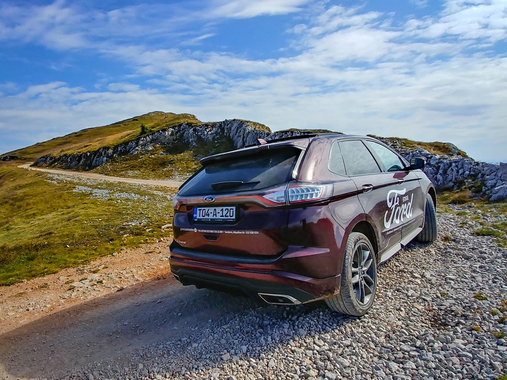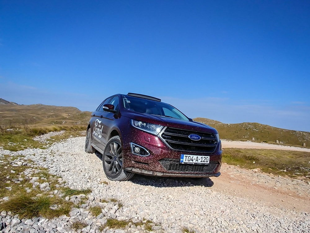 Vožnja velikog SUV modela sa 20 inčnim aluminijumskim točkovima po offroad terenima nema prevelike veze sa zdravom logikom: puno oštrog kamenja za čas će napraviti oštećenja na skupim aluminijumskim točkovima ili će značajno oštetiti putne gume na kakvim standardno dolazi Ford Edge. Ipak, ako se odvažite na neku offroad vožnju pogon na sva četiri točka neće vas iznevjeriti.