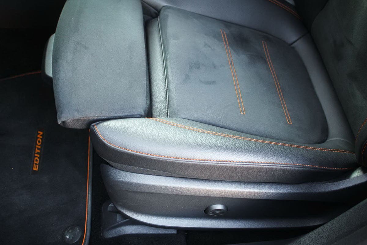 Međutim, ukupna pojava je više nego dovoljna da se svi okreću za vama; počevši od niskoprofilnih „devetnaestica“ sa narandžastim rubom iza kojih se kriju perforirani diskovi, pa do više nego atraktivnog enterijera. Tu su sportska sjedišta sa podešavanjem na struju koja omogućavaju vrlo nisku poziciju vozača. Doduše, nema podešavanja širine naslona, i bočna podrška nije previše izražena, ali su vrlo udobna i lijepo izgledaju.