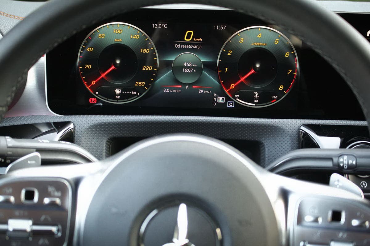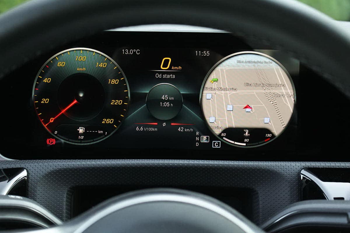 Kao i kod ostalih najnovijih Mercedesa, uživali smo u lakoći kretanja kroz meni, što samih instrumenata, što multimedije. Lijeva grupa tastera na volanu upravlja instrumentima, čiji izgled i vrstu prikaza lako možete da promijenite, dok desna grupa upravlja centralnim ekranom. I da, budite pripremljeni za USB tip-C utičnice. Nema više klasičnih, pa preporučujemo da osigurate nekoliko adaptera, za svaki slučaj.