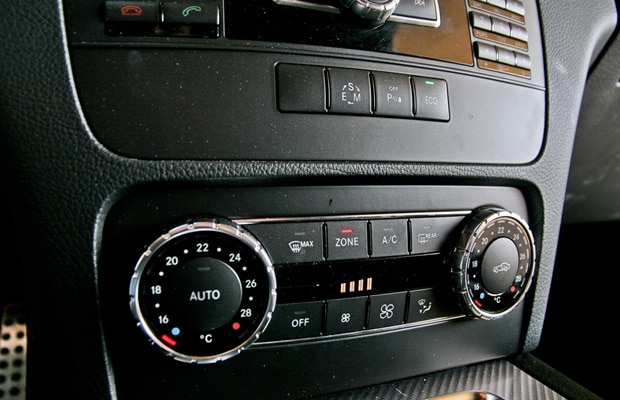 Osjećaj u foteljama i položaj za volanom je skoro identičan kao u “ML”-u. Razlika je jedino u vrlo zakošenom i kratkom prednjem vjetrobranskom staklu koje je, između ostalog, “krivo” za koeficijent aerodinamike od 0.34 Cd; što je otprilike na nivou limuzina iz osamdesetih godina, a to i dalje nije loše. Tu je i čuvena ručica automatskog mjenjača smještena na volanu koja je izuzetno prijatna za korištenje jer je ergonomski dobro postavljena.