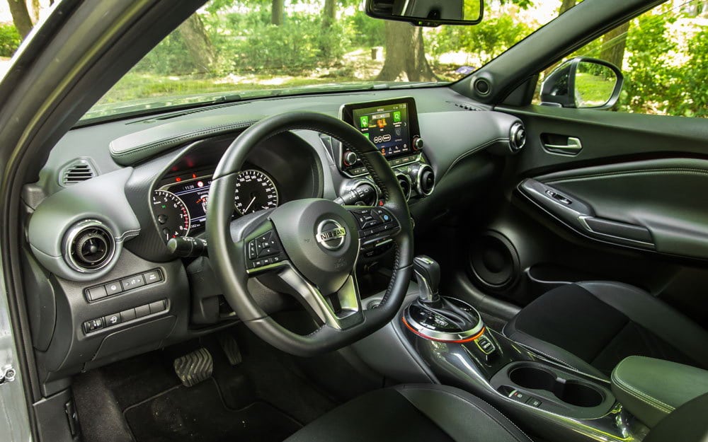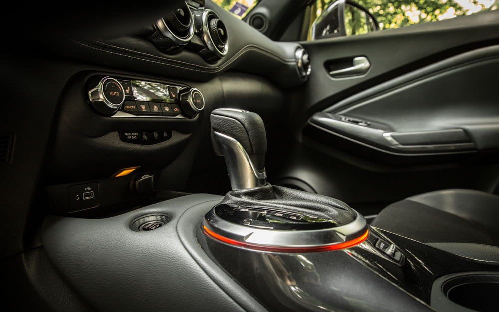 Motor iako ima tri cilindra radi veoma mirno i tiho gdje se gotovo ne čuje karakteristični zvuk trocilindarskog motora. Do brzine od 100 km/h ostat ćete iznenađeni kako Juke lahko i tečno ubrzava. Prijenosni omjeri na mjenjaču dobro su proračunati te imate osjećaj konstantnog dotoka snage. Odličan utisak pomalo kvari povremeno grubo kretanje iz mjesta koje je teško objasniti zbog čega se povremeno javlja. Iza upravljača nalaze se i komande za ručno mijenjanje stepena prijenosa koje rade korektno.