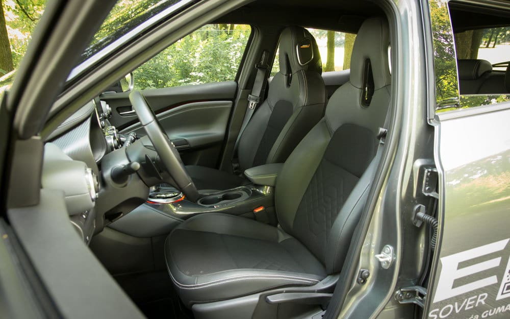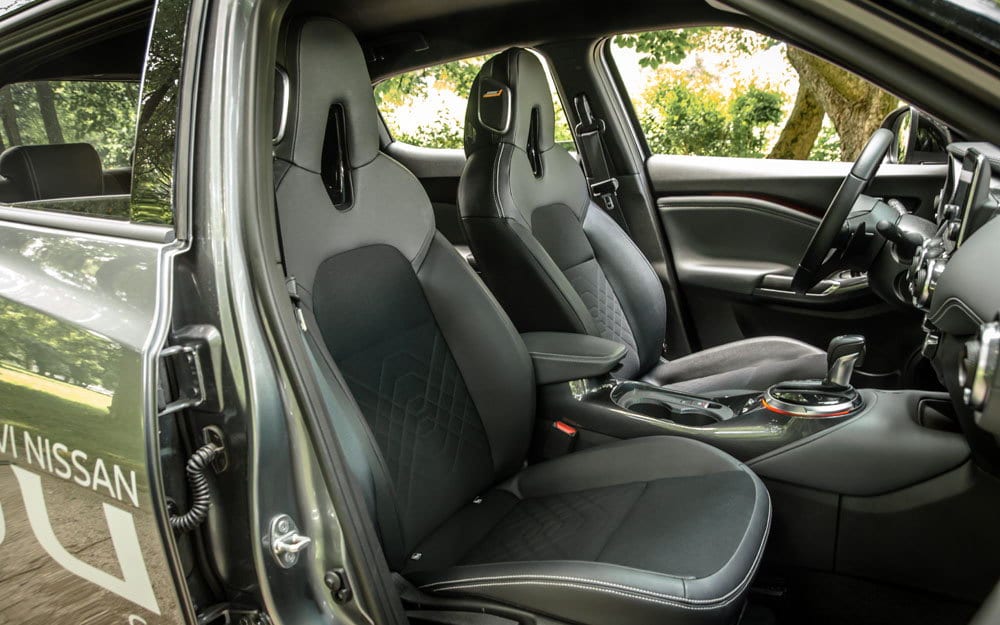 Povišena pozicija sjedenja daje osjećaj sigurnosti i brzo ćete pronaći adekvatnu vozačku poziciju. Sjedišta su sportski profilisana i daju dosta dobru potporu u dinamičnoj vožnji. Sa druge strane razmaženi putnici koji pretenduju na ekstremnu udobnost neće biti najsretniji, ali Juke i nije namijenjen za populaciju koja ima probleme sa išijasom ili reumom, već za mladu, zdravu i poletnu populaciju… Upravo ta populacija imat će puna usta hvale za ova sjedišta!