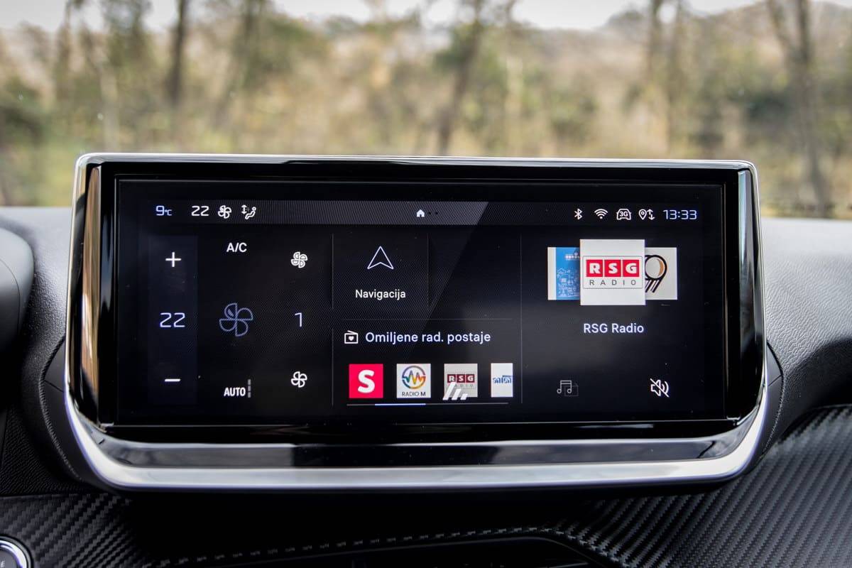 Na sredini centralne konzole nalazi se samostojeći 10-inčni ekran Infotainment sistema preko kojeg upravljate ventilacijom, audio sistemom, navigacijom, podešavanjem opcija na vozilu i telefonijom. Ispod samog ekrana nalaze se pravi fizički prekidači u obliku klavirskih tipki po čemu je PEUGEOT postao prepoznatljiv. Preko njih se izvršava dio komandi koje nisu prebačene na ekran osjetljiv na dodir, poput četiri žmigavca, recirkulacija zraka u kabini, otključavanje/zaključavanje vozila, sada je ubačena i „touch Home“ tipka koja vas vraća na početne postavke prikaza ekran …