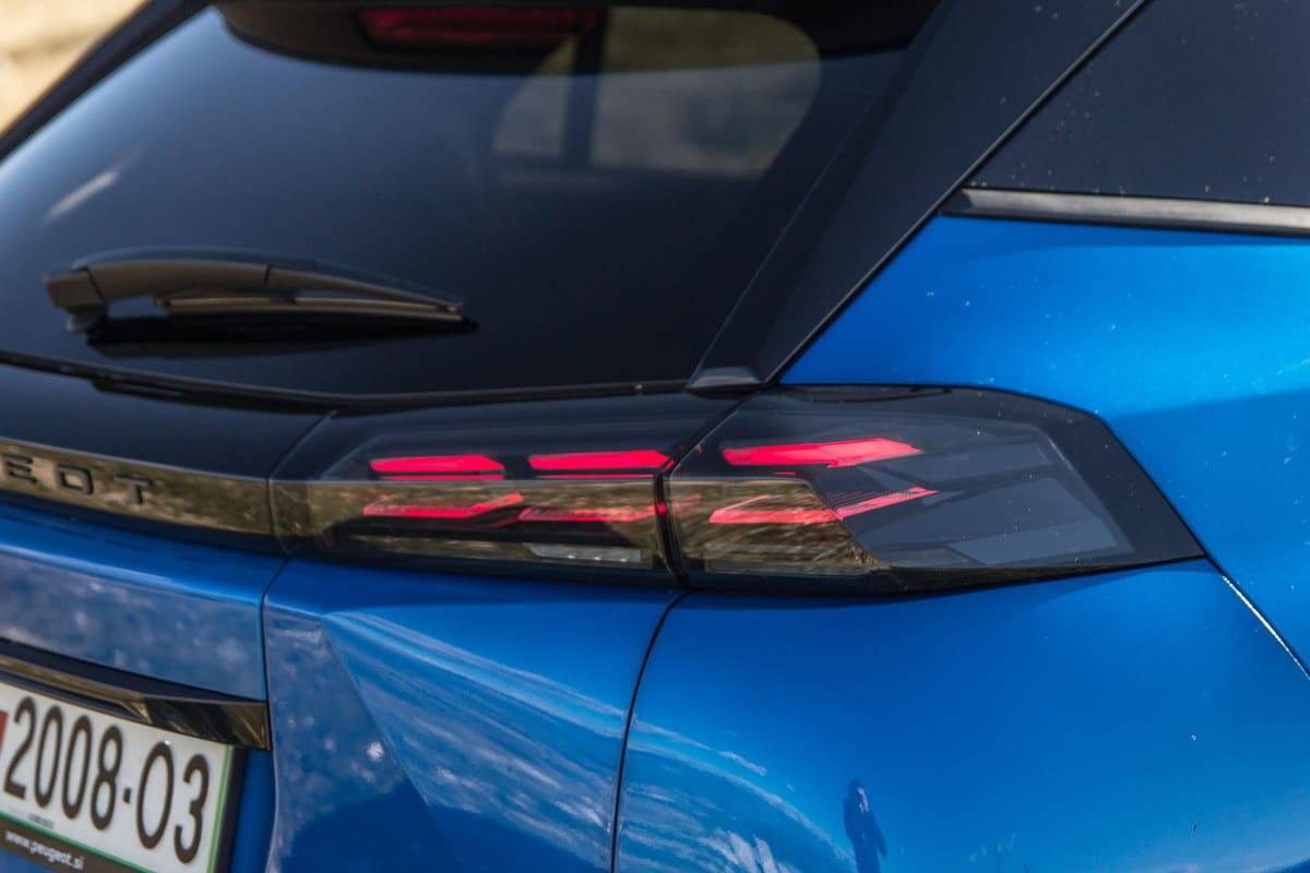 Zadnjim dijelom automobila vizuelno dominira već prepoznatljiva svjetlosna grupa koja više ne nosi grafički potpis traga „lavlje kandže“. Sama svjetlosna grupa izgleda kao jedna cjelina koja se proteže duž cijelog poklopca prtljažnika. Ovakvo rješenje već je viđeno kod većeg 3008 koji je svojim dizajnom očarao brojne kupce. Sigurni smo da razumijete zašto su dizajneri posegnuli za ovim rješenjem – provjeren recept za uspjeh.