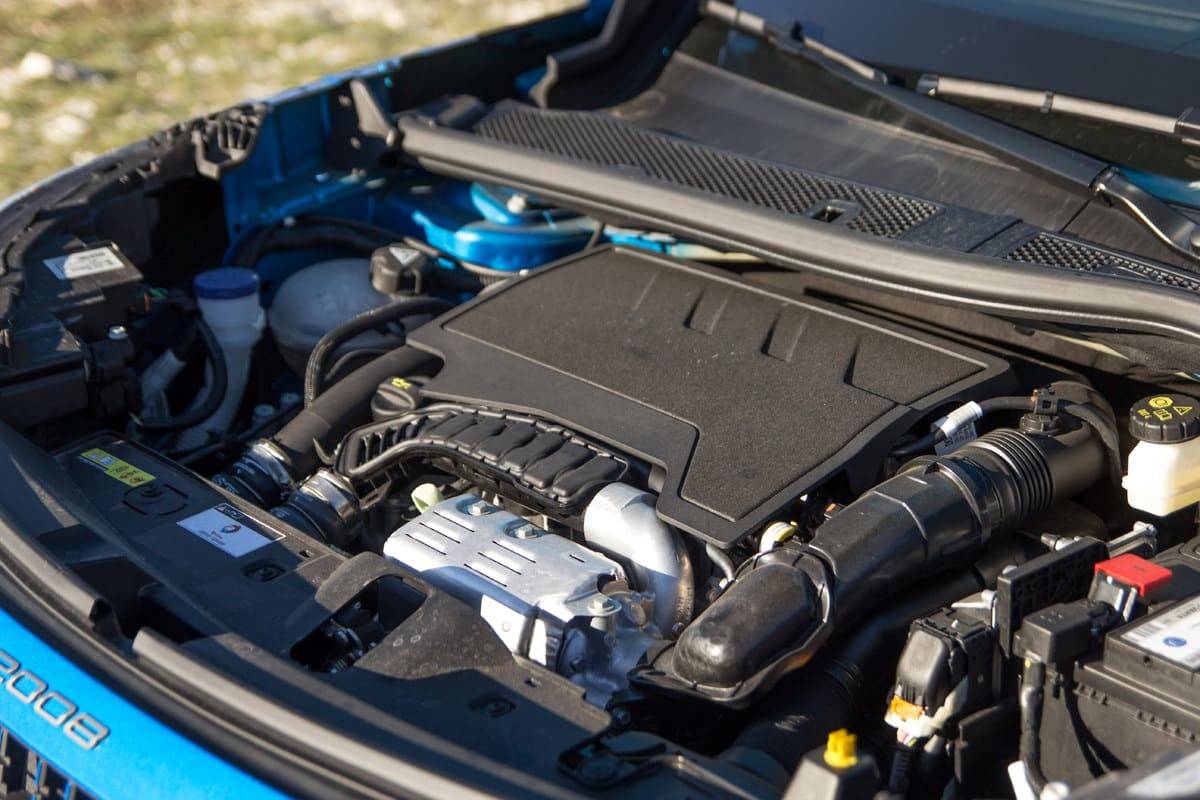 Testni model pokretao je 1.2 litreni turbo benzinski motor – PureTech s tri cilindra koji isporučuje 130 KS pri 5.500 okr/min. i 230 Nm okretnog momenta pri 1.750 okr/min. Njegova snaga prenosi se na prednje točkove preko EAT8 automatskog mjenjača sa osam stepeni prijenosa. Prijenosni omjeri su dobri i dosta su „nabijeni“ pa brzim izmjenama stepena prijenosa ovaj mjenjač izvlači najbolje iz ovog motora. Proizvođač garantuje da će osvježena 2008-ca, čija težina iznosi 1.205 kg, sa ovom kombinacijom motora i mjenjača od 0 do 100 km/h stići za 9,4 sekundi i postići najveću maksimalnu brzinu od 198 km/h. Na raspolaganju su tri režima vožnje, eko, normal i sport koji regulišu rad agregata i mjenjača te direktno utiču na performanse.