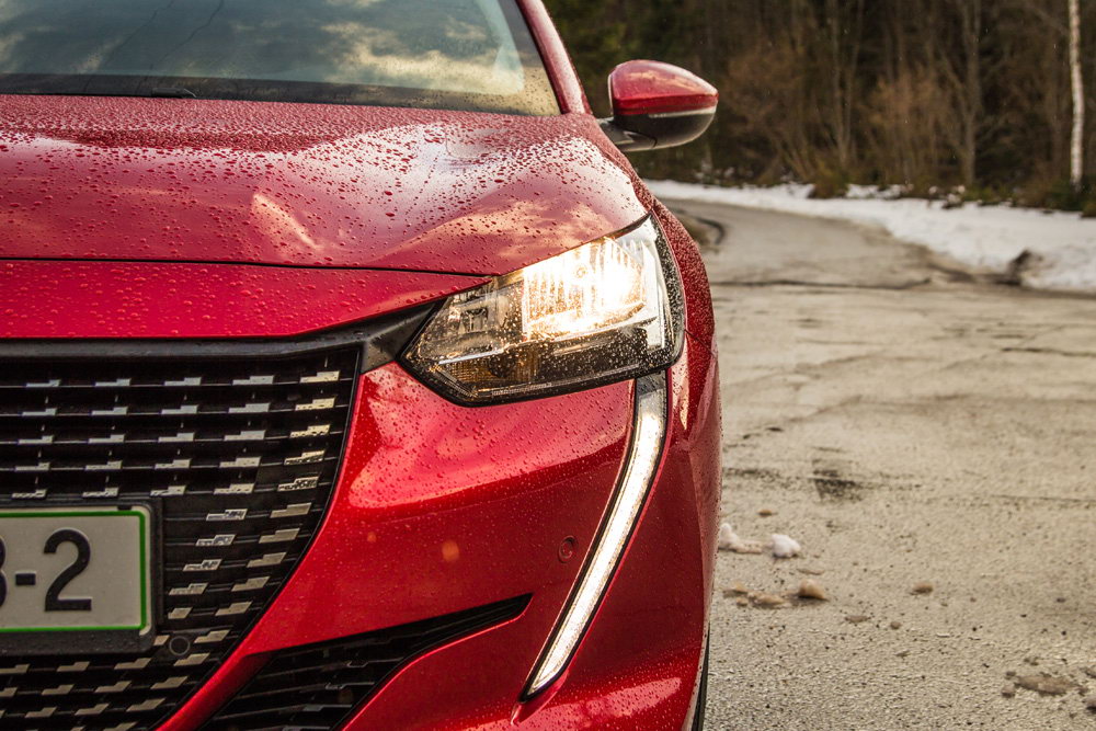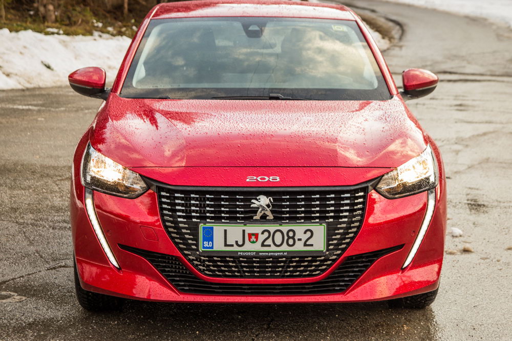 Aktuelna dizajnerska filozofija sa LED svjetlima u obliku lavljih očnjaka primijenjena je i na novi 208. Prednjim dijelom osim atraktivnih svjetala dominira i velika rešetka hladnjaka pa sve ukupno to izgleda veoma lijepo. Koncept je preuzet za velikog modela 508 koji definitivno plijeni pažnjom, a kojeg smo također nedavno testirali (test možete pročitati OVDJE).