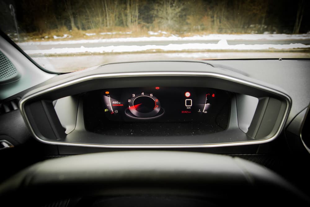 Unutrašnjost je također nova u odnosu na prethodni model. Ulaskom u putničku kabinu vozača će dočekati i-Cockpit treće generacije. O ovom rješenju vodile su se i još uvijek se vode polemike koliko je zapravo ono praktično. Nama je dizajnerski lijepo, ali ne i funkcionalno, bez obzira na sva unaprjeđenja koja je dobio kroz tri generacije. Jednostavno, nije moguće pronaći idealan položaj za vožnju, a tome doprinosi i predimenzionirani unutrašnji retrovizor koji smanjuje preglednost sa vozačeve desne strane.
