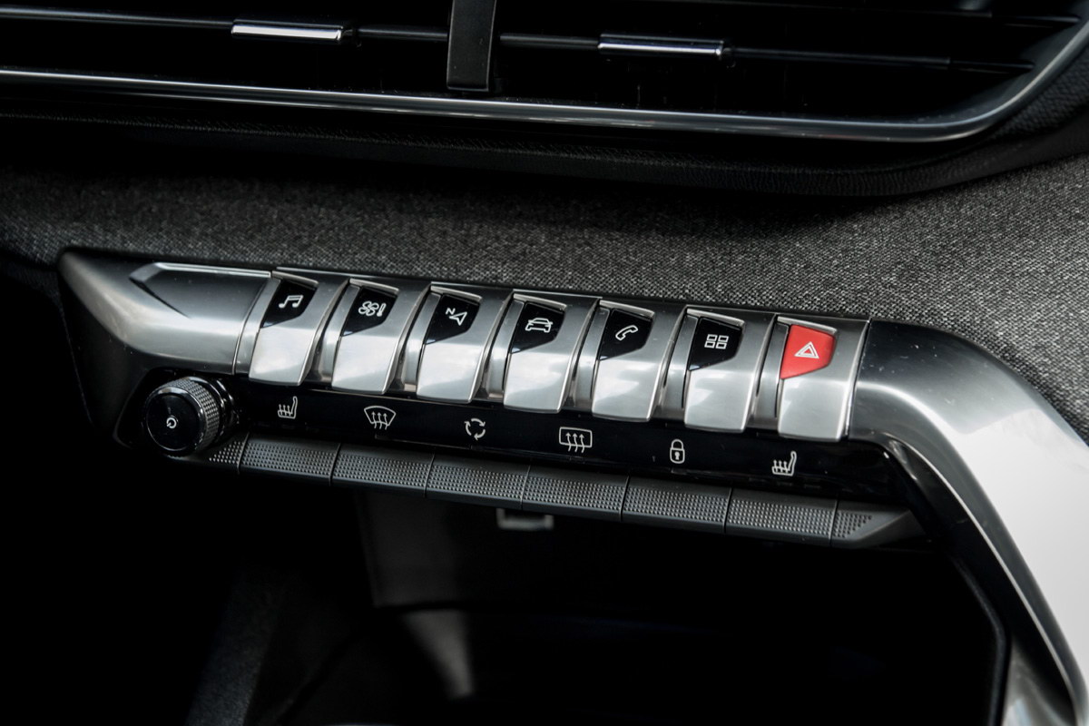 Centralna konzola ostala je ista uz već poznati raspored bitnih komandi. Peugeot je odlučio i dalje zadržati kombinaciju modernih digitalnih i fizičkih tradicionalnih prekidača što se čini optimalnim rješenjem. Fizičkim prekidačima koji podsjećaju na klavirske tipke prolazi se kroz menije (audio uređaj, ventilacija, navigacija…), a preko centralnog ekrana rade se podešavanja. Centralna konzola kao i kod prethodnika blago je usmjerena prema vozaču što daje dozu sportskog osjećaja.