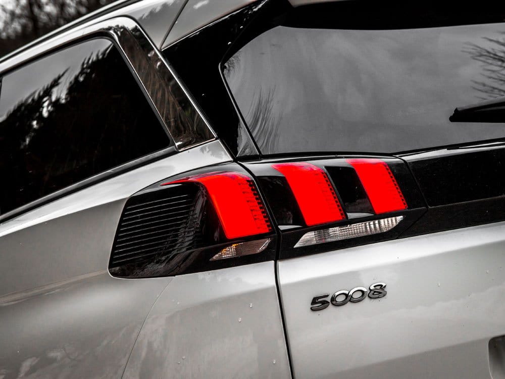 Zadnjim dijelom dominira veliki poklopac prtljažnika koji je maksimalno razvučen do samih krajeva automobila. Svjetlosna grupa podijeljena je u dva dijela, veći dio koji je postavljen u poklopac prtljažnika i onaj manji dio koji je fiksno postavljen na karoseriju. Odlična grafika zadnje svjetlosne grupe podijeljena u tri dijela, što predstavlja otisak lavlje kandže. Ovaj originalni svjetlosni potpis francuskog brenda posebno je atraktivan noću što ostavlja poseban utisak.