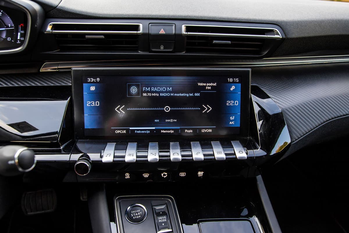 Kada je riječ o kvalitetu materijala i završnoj obradi, Peugeot je i tu napravio napredak. Centralna konzola je napravljena od mekane gume, a na centralnom grebenu dominira plastika sa Black Piano lakom. Tu su i elementi koji vjerno imitiraju karbon, pa u konačnici sve izgleda jako dobro i moderno. Završna obrada je na visokom nivou kakva dolikuje premium segmentu.