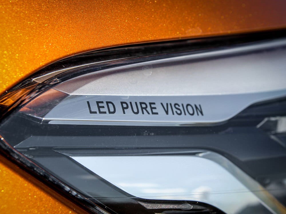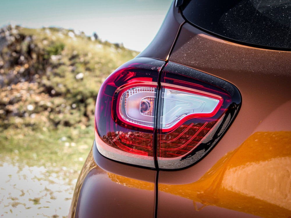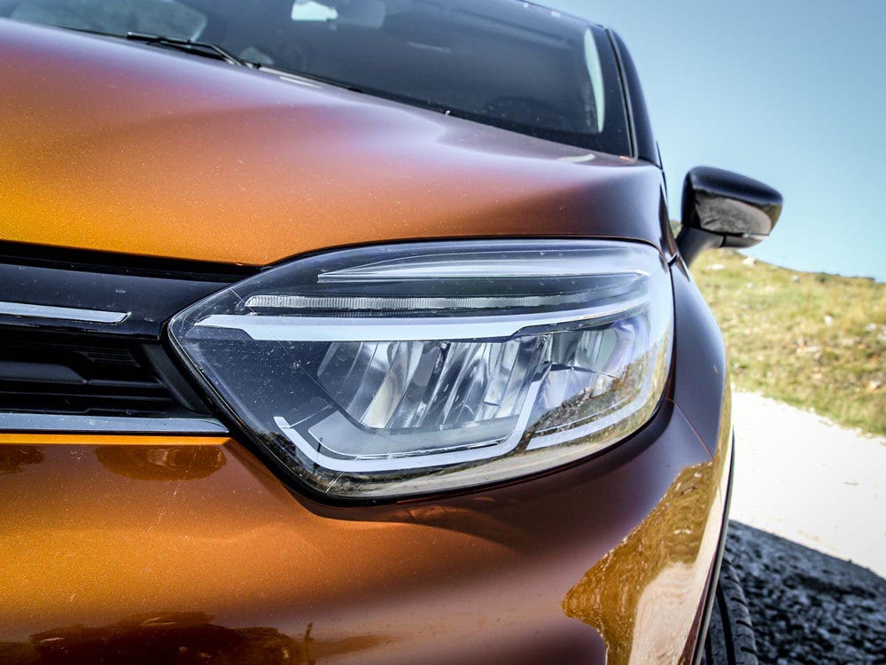 Osnovna dnevna LED svjetla u prepoznatljivom C obliku i pozicionirana su u dnu branika, pa uz modifikovani prednji gril Captur podsjeća na veći Kadjar. Prednjim dijelom dominira predimenzionirani znak Renaulta, a mali dašak luksuza daje hromirana letvica na rešetki motora. LED dnevna svjetla koja su standardni dio svakog paketa opreme, upotpunjuju atraktivni izgled prednjeg dijela automobila.