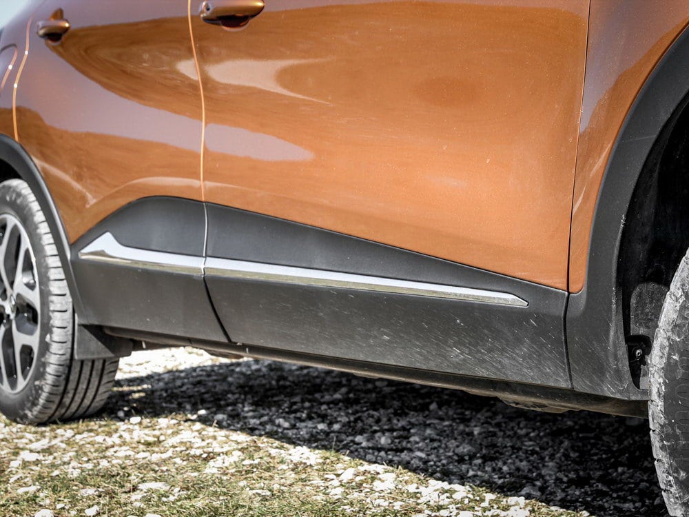 Bočna strana automobila otkriva njegov pravi karakter, pa tako možemo vidjeti crne zaštitne plastike koje ukazuju da se radi o crossover automobilu koji je spreman uhvatiti se u koštac sa manjim off-road izazovima. Zaštitna plastika vrata, koja se nastavlja i na pragovima, oplemenjena je sa hromiranim umetkom koji se proteže duž cijele zaštitne obloge, te tako daje malu dozu luksuza.