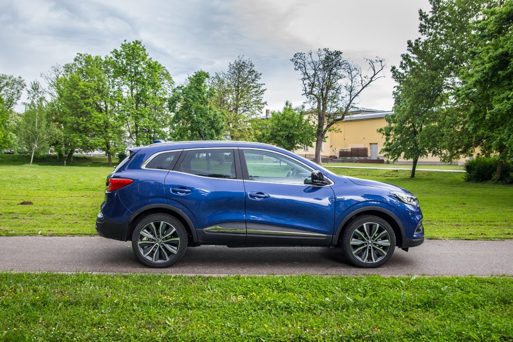 Kadjar donosi jasnu sličnost sa manjim Capturom, ali zbog većih dimenzija, drugačijih proporcija, naglašenih blatobrana te većeg rastojanja od tla, ostavlja utisak znatno robusnijeg i sposobnijeg automobila.