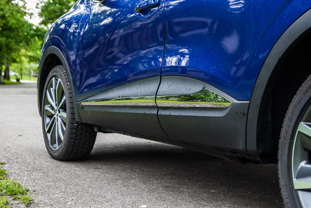 Novi dizajn uočljiv je na oba branika sa hromiranim umetcima, a kod novog Kadjara dostupna su i dva nova tipa aluminijskih točkova od 17 i 19 inča. Ovakav izgled je mnogo elegantniji, fluidniji ali i rafiniraniji.
