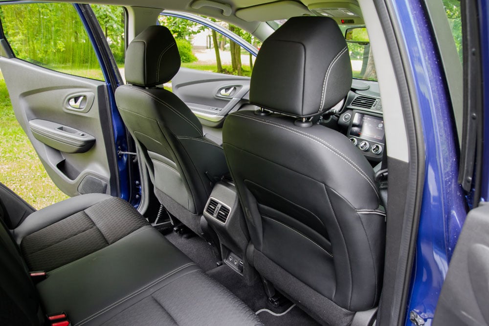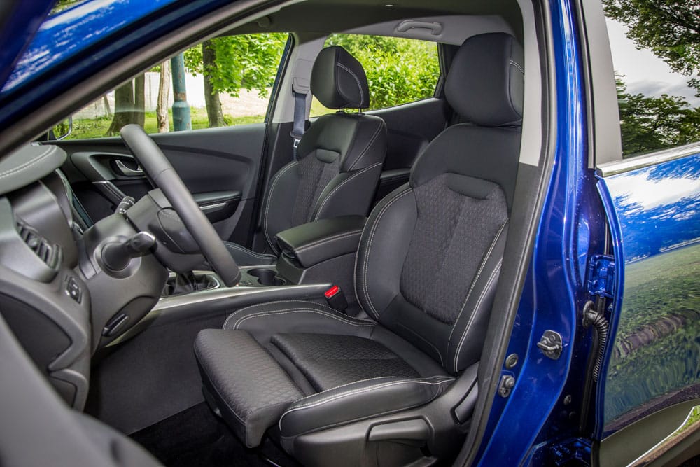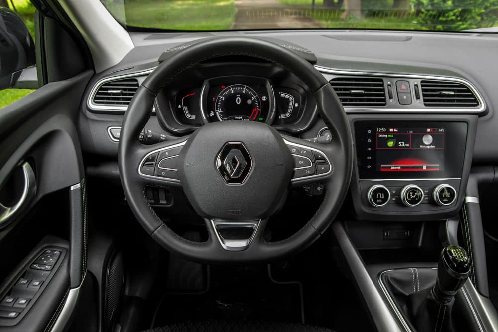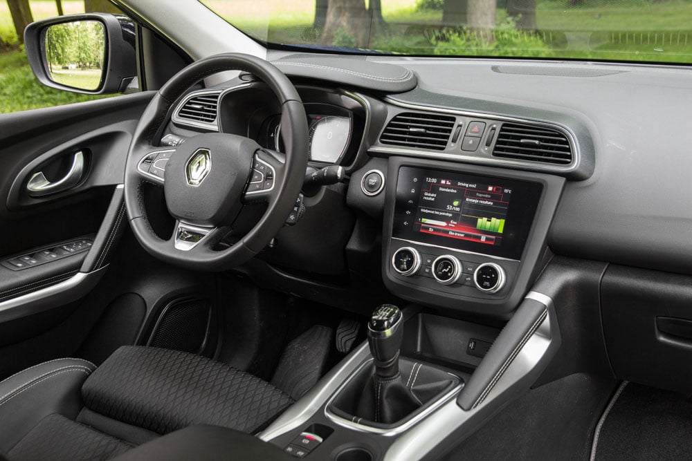 Prednja sjedišta su udobna i jako dobro profilisana, pa ćete tokom vožnje uživati u udobnosti i dobrom držanju tijela. Sjedišta Kadjara su izrađena od materijala različitih tvrdoća: centralni dijelovi sjedišta i nasloni su od mekšeg materijala, dok su bočni dijelovi napravljeni od tvrđeg, kako bi osigurali bolju lateralnu podršku. Preglednost iz vozačke perspektive nija na zavodnom nivou, a za jednostavno parkiranje neophodni su parking senzori.