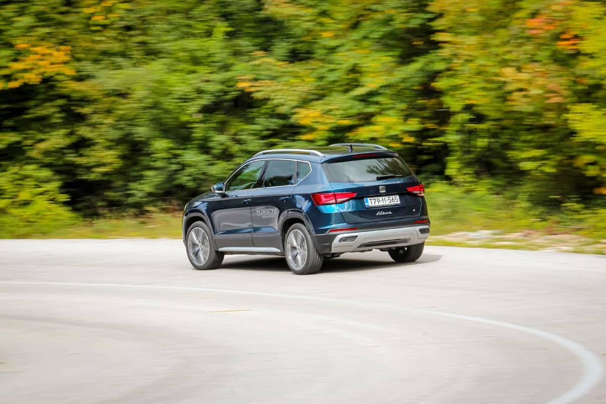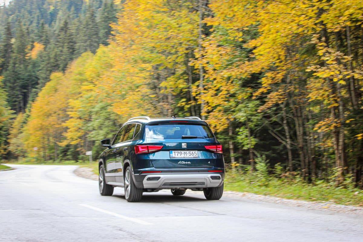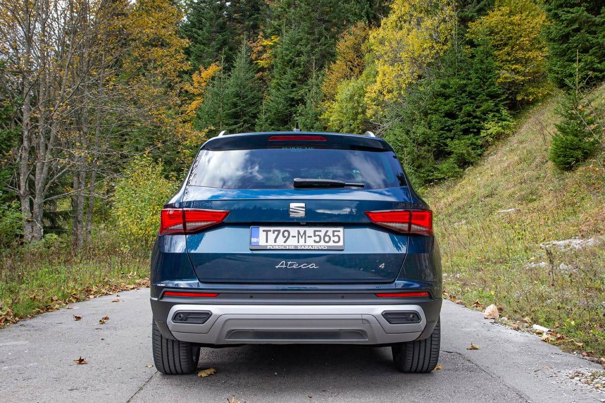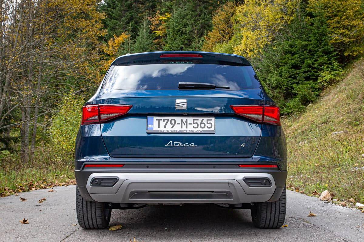Ateca u ovoj kombinaciji motora, mjenjača i 4×4 sistema pogona na sve točkove ima ubrzanje 0 do 100 km/h za 8,8 sekundu i postiže maksimalnu brzinu od 200 km/h. To su svakako respektabilne performanse posebno kada u obzir uzmemo težinu od 1,8 tona. Bitan segment je i efikasnost pogonskog sklopa, a tokom testa u gradskim uslovima putni računar je zabilježio prosječnu potrošnju od 6,8 l/100 km (do 9 l/100 km u ekstremnim gužvama kada je bila pokrenuta i regeneracija DPF filtera).